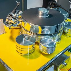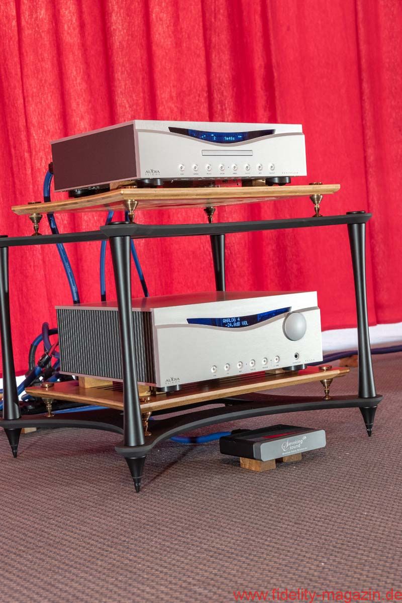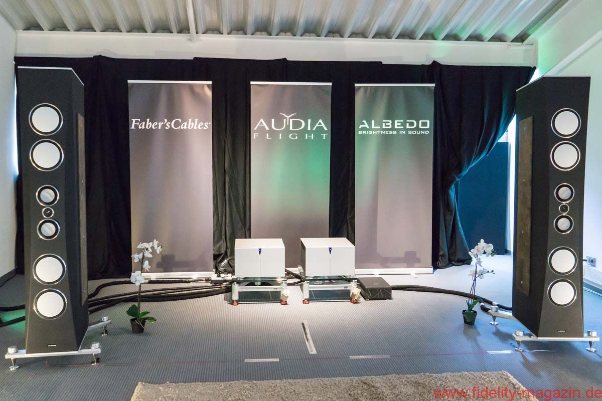 Auch die Verstärker von Audia Flight findet man nicht an jeder Ecke. In einem Seitengang eines der beiden großen Messe-Atrien tönte die italienische Elektronik so gut, dass ein Teil des FIDELITY-Teams deutlich länger als geplant sitzen blieb. Vorgeführt wurde von Schallplatte, im Mittelpunkt standen die gewaltigen Audia-Flight-Monoblöcke Strumento No. 8, die ein Pärchen großer Standboxen des hierzulande kaum bekannten, wie Audia Flight in Italien beheimateten Lautsprecherherstellers Albedo befeuerten. In einem babylonischen Sprachengewirr aus Italienisch und Englisch fanden wir heraus, dass Albedo wohl ein vergleichsweise umfangreiches Schallwandler-Portfolio hat. Wenn der Rest genau so gut wie die beiden Vorführboxen klingt (woran ich nicht wirklich zweifle), dann gibt es einen neuen Geheimtipp für musikalische Feingeister – und nicht nur für Opernfans, obwohl ich Anna Netrebkos „La Traviata“ (Deutsche Grammophon) kaum je so lebensnah hören durfte. Das zweite Highlight bei Audia Flight war leider nicht angeschlossen, weshalb ich mir über das Klangpotenzial auch noch kein Urteil erlauben kann: der nagelneue FLS-20 SACD-Player. Schön, dass die Italiener ein Herz für die Freunde der HiRes-Silberscheiben haben. Noch schöner, dass der Player nicht in der Überflieger-Topklasse namens „Strumento“ erscheint, sondern in der darunter angesiedelten, erfahrungsgemäß kaum weniger anspruchsvoll entwickelten FLS-Linie. Angesichts der Meriten, die sich die Verstärker aus dem Hause Audia Flight in der FIDELITY-Redaktion erworben haben, bin ich auf diesen Silberscheibendreher extrem gespannt.