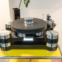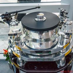 Aus den ursprünglich ebenfalls aus England importierten Transcriptor-Plattenspielern wurden relativ bald, Anfang der 1970er Jahre, die ersten Modelle, die den Namen Transrotor trugen. 1976 kam die erste Eigenentwicklung mit Elektromotoren von Papst. Stolz ist Jochen Räke darauf, dass es auch für 40 Jahre alte Transrotor-Plattenspieler noch nagelneue Motoren gibt, die im Rahmen eines umfangreichen Überholungsprogramms eingebaut werden können. „Es rechnet sich, in den guten Ruf zu investieren“, meint Räke dazu. Dazu gehört auch, dass Transrotor-Plattenspieler komplett im Haus zusammengebaut werden: „Fertigungstoleranzen haben bei uns keine Chance, wir wollen besser als der Wettbewerb sein“, sagt Jochen Räke trocken. Tradition hat bei Transrotor die Zusammenarbeit mit den britischen Analogexperten von SME, mit deren anerkannt guten Tonarmen auch die meisten Transrotor-Plattenspieler ausgestattet sind.In diesem Jahr haben die Briten ein neues Modell vorgestellt, dessen Prototyp auf der Messe zu sehen war. Der Aufkauf der Reibradantrieb-Pioniere von Garrard soll laut Jochen Räke in eine SME-Zweitmarke münden. Was gut war, kommt offensichtlich auch zuverlässig wieder.
