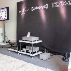 Neben der imposanten Audio-Physic-Produkthistorie auf einem Plakat spielte Leonard Cohen auf einem Flachbildschirm sein überragendes Live-In-London-Konzert von 2008. Eine Aufnahme, die mir sehr vertraut ist, und die mich auch über die ungewohnte Kette nichts vermissen ließ. Die ziemlich ausladende Structure von Audio Physic zerriss das Majestätische dieser Performance nicht in Frequenzfragmente, sondern präsentierte Frontmann Cohen und seinen Backgroundchor als symbiotische Einheit. Diese Lautsprecher stellten dem xo|one eine perfekt weiße Leinwand zur Verfügung, auf der der x-odos-Server seine Stärken voll ausleben konnte. Es klang wunderbar unmittelbar und frei von Verfärbungen oder Verzögerungen. Die Vorführung hinterließ einen ausgesprochen lebendigen Eindruck, perfektes Timing und wie gläsern wirkende Transparenz machten den zunächst stärksten Eindruck auf mich. Später gesellten sich auch weiche Kriterien wie hohe Emotionalität dazu. Um dies auch wirklich auskosten zu können, musste ich mich allerdings dazu zwingen, nicht ständig auf den Bildschirm zu starren.