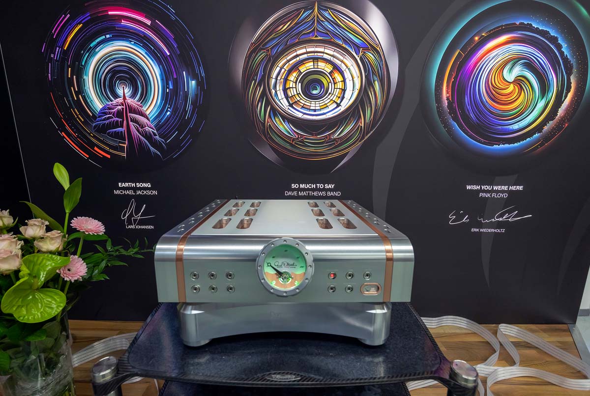 Welchen Einfluss der Verstärkerklang auf eine Stereokette haben kann, ließ sich bei Dan D’Agostino nachlauschen, dessen Verstärker im Steampunk-Stil mit ihren großen Zeigerinstrumenten und ihren neuerdings wahlweise kupferfarbenen Zierleisten mehr denn je Hingucker sind. Seine Kreationen führte der Altmeister in München persönlich vor und gewährte dabei Einblicke in jene Hochphase des High End, als D’Agostino mit Entwicklerkollegen wie John Curl und Nelson Pass um die effizientesten Schaltungen, die beste Stromstabilität, den präsentesten Klang konkurrierte.