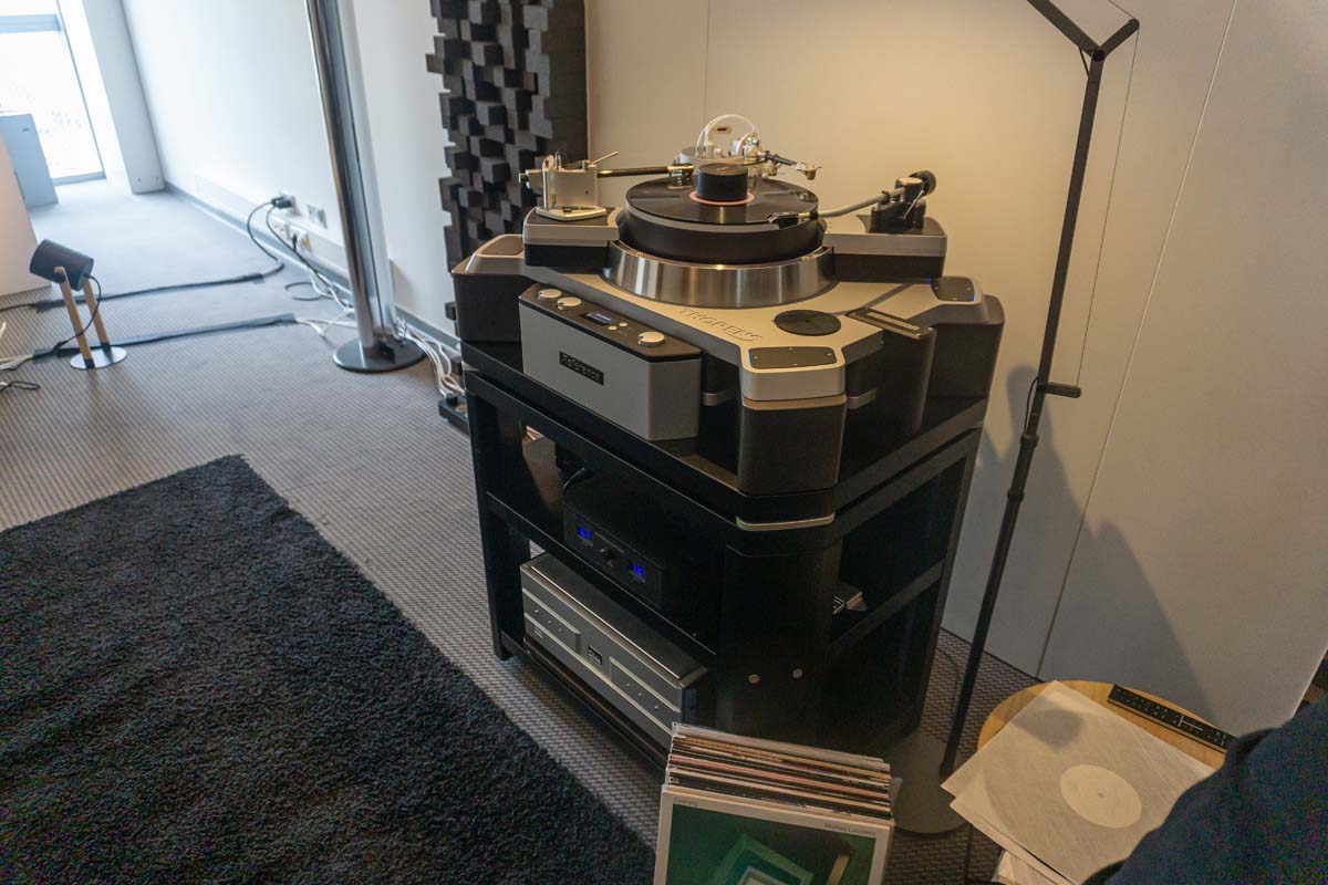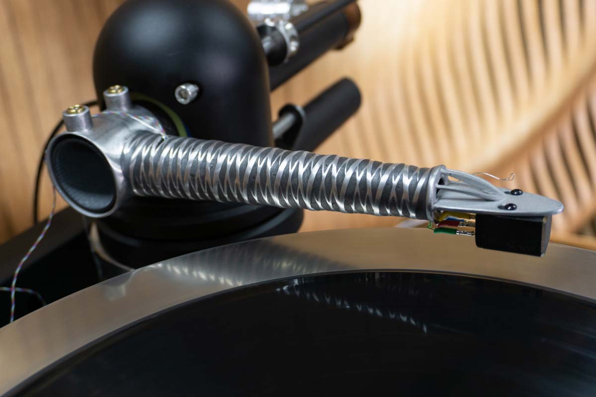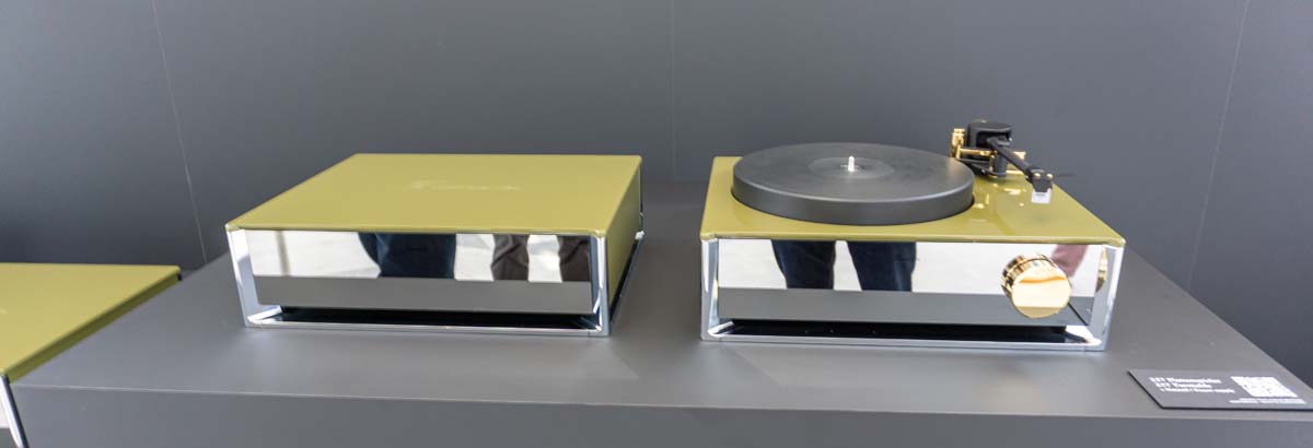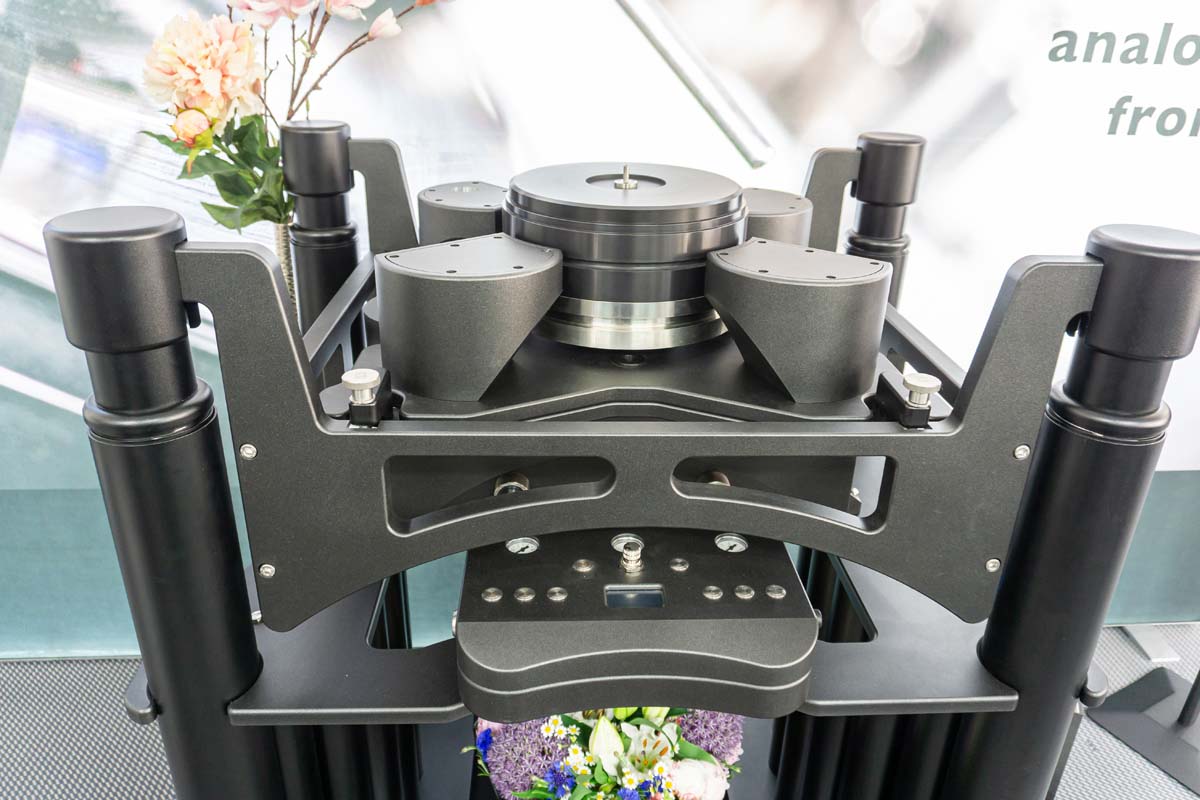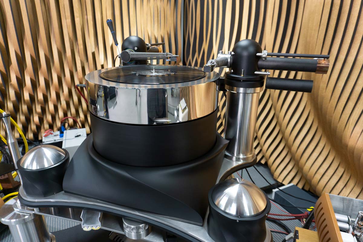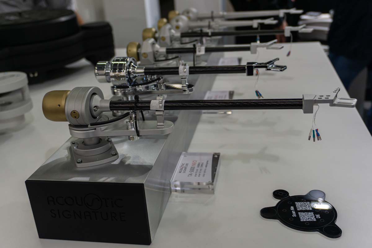 Besonders auffällig waren auch die Tonarme, die aus dem 3D-Drucker stammen und je nach Ausführung aus Titan oder einem Aluminium-Carbon-Verbund bestehen. Sie sind luftgelagert und mechanisch auf höchstem Niveau umgesetzt.