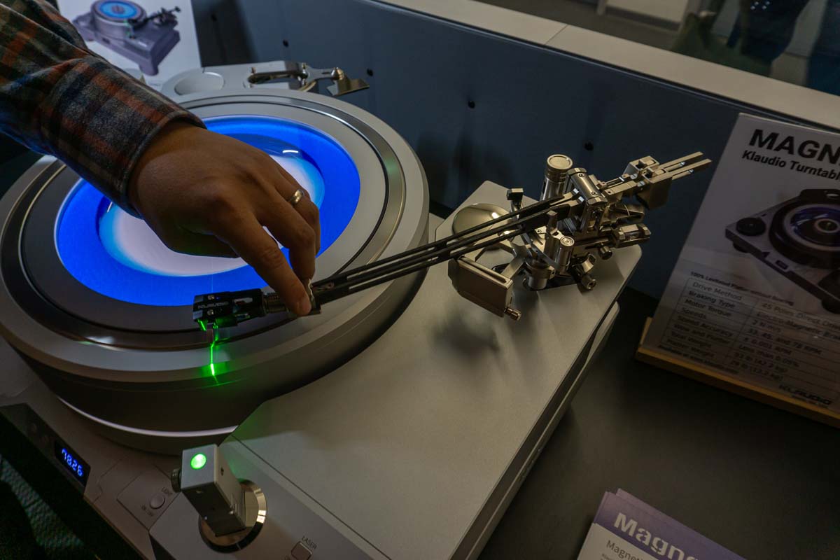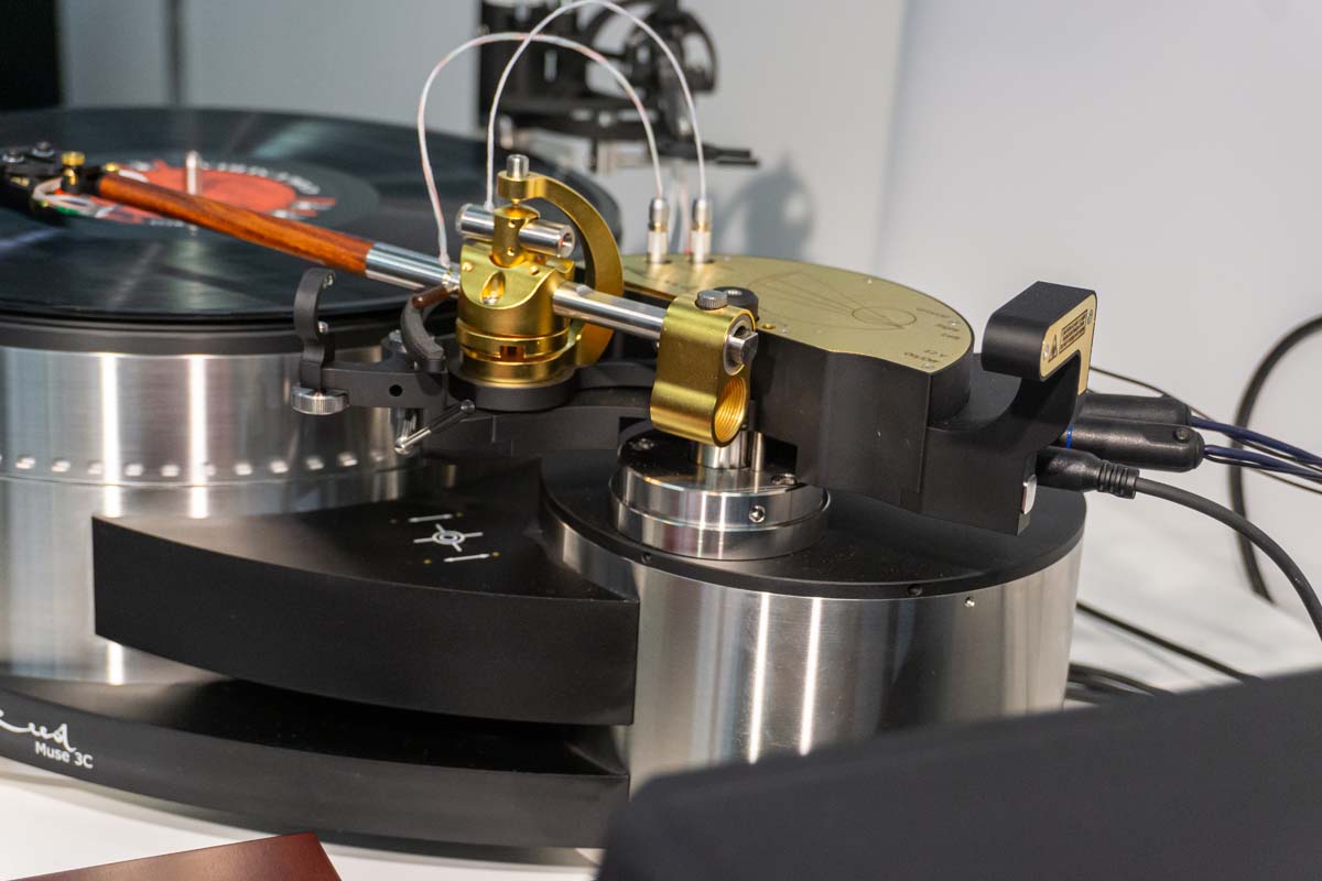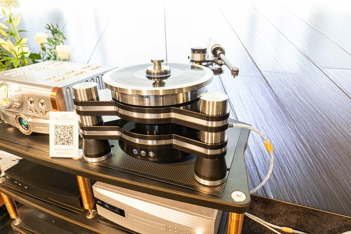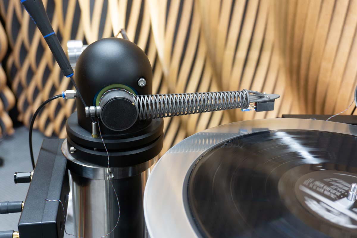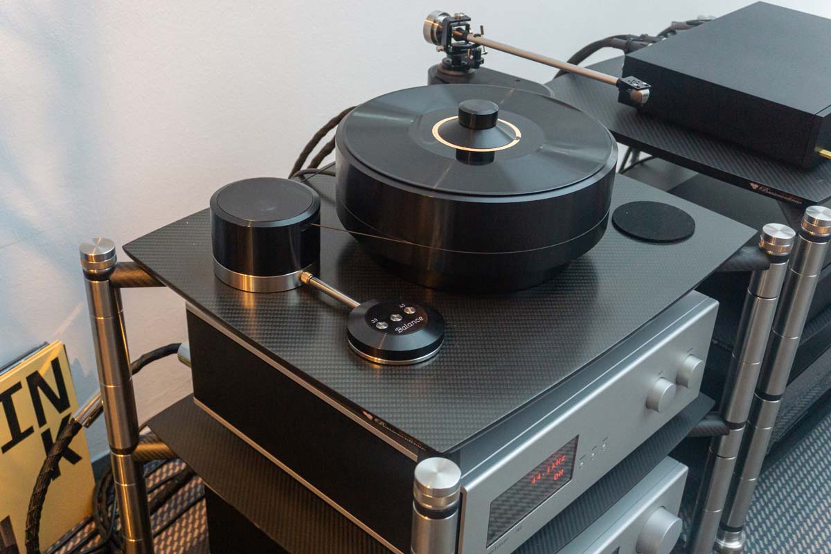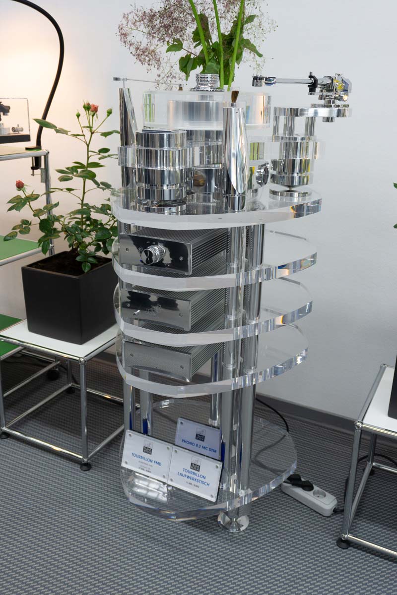 Besonders auffällig waren auch die Tonarme, die aus dem 3D-Drucker stammen und je nach Ausführung aus Titan oder einem Aluminium-Carbon-Verbund bestehen. Sie sind luftgelagert und mechanisch auf höchstem Niveau umgesetzt.