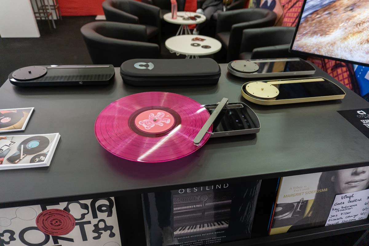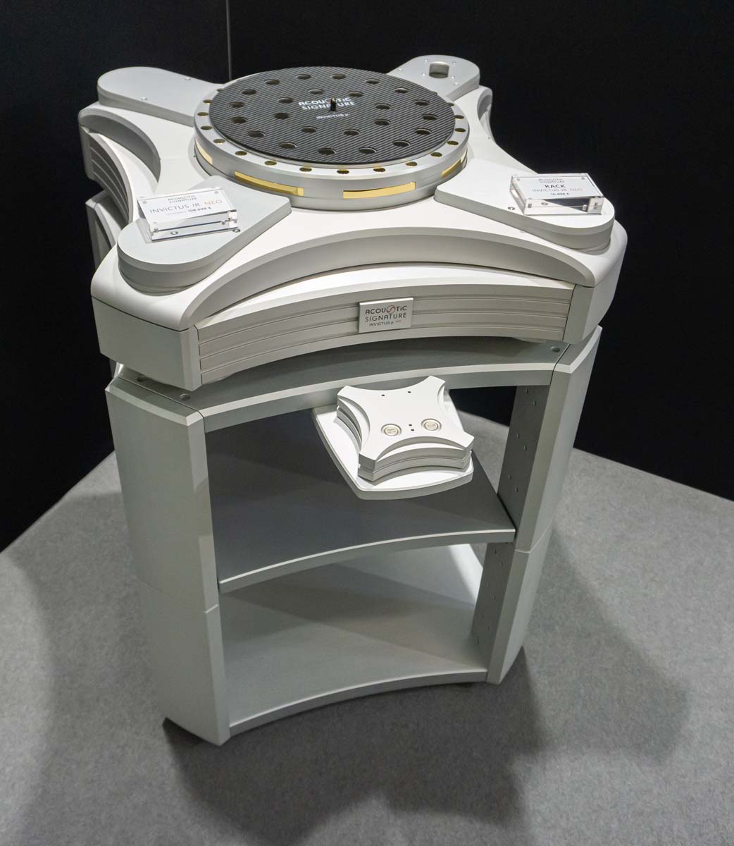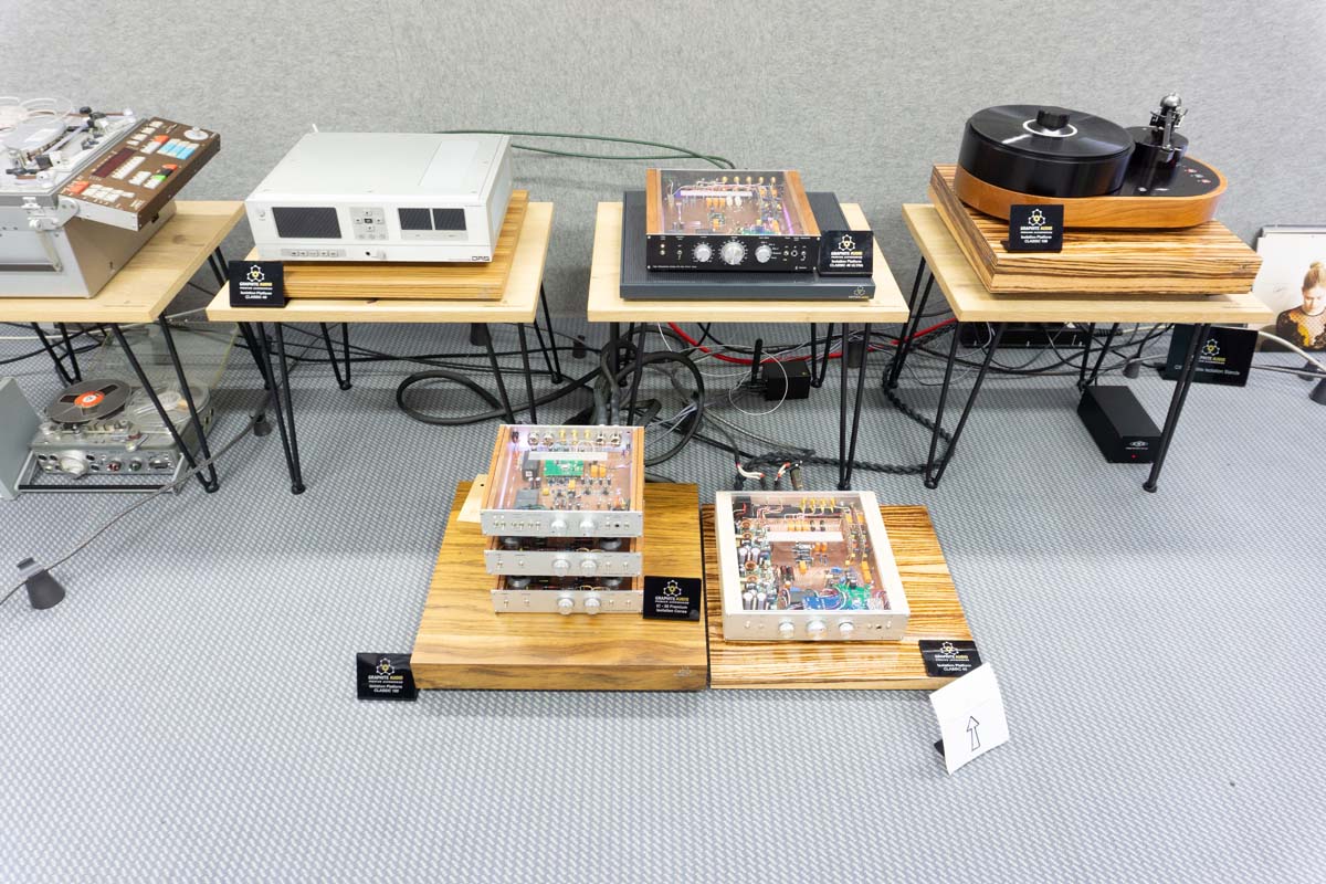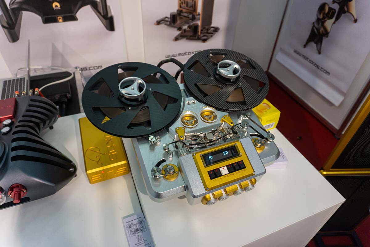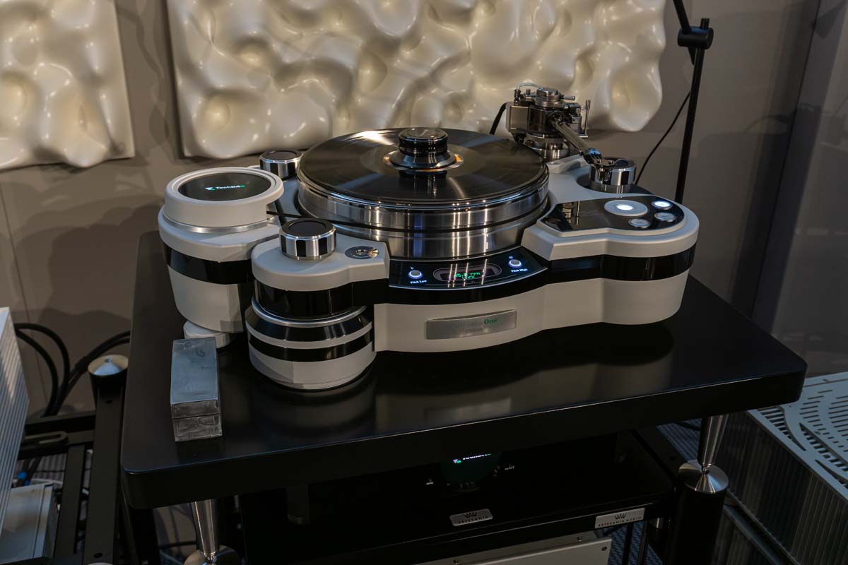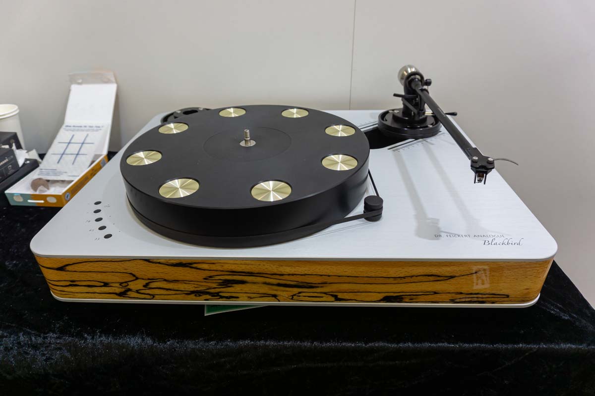 Besonders auffällig waren auch die Tonarme, die aus dem 3D-Drucker stammen und je nach Ausführung aus Titan oder einem Aluminium-Carbon-Verbund bestehen. Sie sind luftgelagert und mechanisch auf höchstem Niveau umgesetzt.