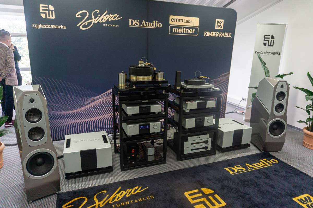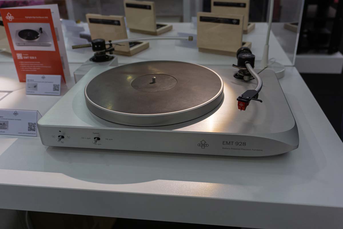 Bei Transrotor war wie immer viel fürs Auge geboten: poliertes Aluminium, schwere Laufwerke und extravagante Präsentation. Besonders spannend: die neuen Tonabnehmermodelle, darunter das MC Tamino an der Spitze des Line-ups. Auch der goldene Tonarm und die verspielte Optik setzten klare Akzente.