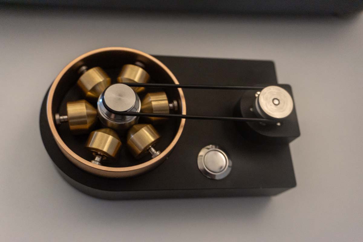 Für mich war der Magnezar von Klaudio der innovativste Plattenspieler der gesamten Messe. Er zeigt eindrucksvoll, dass selbst bei einem traditionsreichen Thema wie dem analogen Laufwerk noch echte Neuerungen möglich sind. Herzstück des Konzepts ist der vollständig magnetgelagerte Plattenteller, der berührungslos im Raum schwebt und von einem präzise regelbaren Direktantrieb mit 45-poliger Struktur in Rotation versetzt wird.