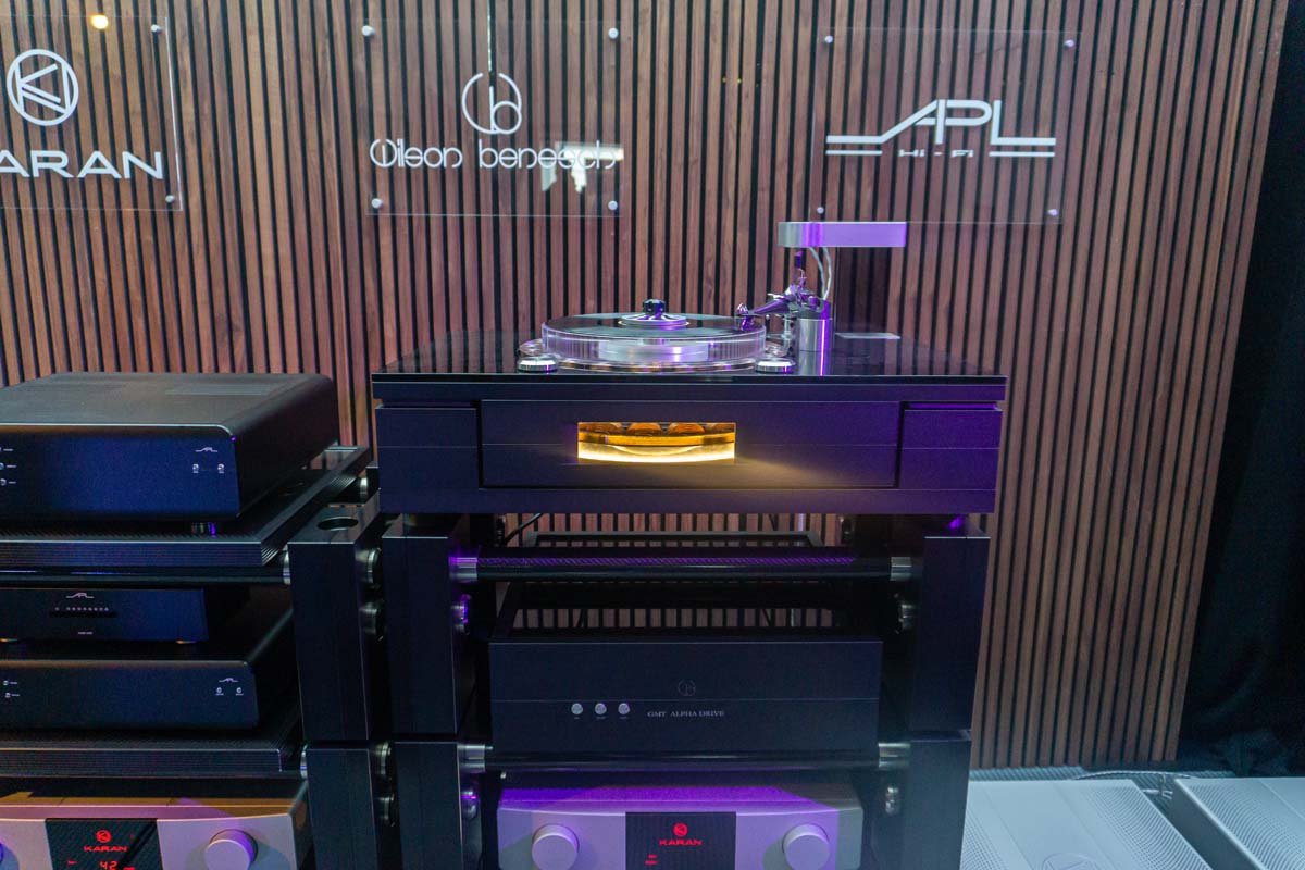 Mit dem neuen GMT One System zeigte Wilson Benesch einen der technologisch ambitioniertesten Plattenspieler der Messe. Der patentierte Omega Drive nutzt 21 Spulen und 14 Neodym-Magnete für absolut präzisen Direktantrieb. Der Tonarm Graviton Ti wird aus Titan im Lasersinterverfahren gefertigt – leicht, steif und perfekt gedämpft.