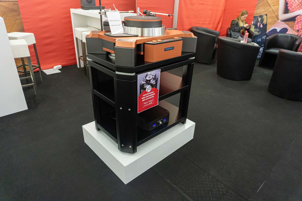 Bei Audio Reference war der neue VPI Model One aus der Forever-Serie zu sehen. Das massive Laufwerk steht auf einem gedämpften Chassis und wirkt gewohnt hochwertig. Der neue S-Tonarm ist ein klares technisches und optisches Statement.