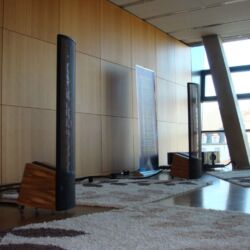 Das Darmstadtium ist ein eindrucksvolles Wissenschafts- und Kongresszentrum mit atemberaubender Architektur. Aus einer Vielzahl von Gründen eignet es sich hervorragend für eine Veranstaltung wie die HoT. Zum einen ist es die schiere Zahl der zur Verfügung stehenden Räume und deren architektonische Wirkung, zum anderen die akustische Klasse dieser Räume. Das Darmstadtiom weist durch die Bank professionell und perfekt akustisch optimierte Räume mit definiertem Reflexions- und Absorptionsvermögen und damit definierter Nachhallzeit auf. Und das war hörbar: Selbst ein kleines Setup in einem eigentlich zu großen Raum klang gut. Der umgekehrte Fall kam durch die großzügigen Räumlichkeiten gar nicht erst vor …