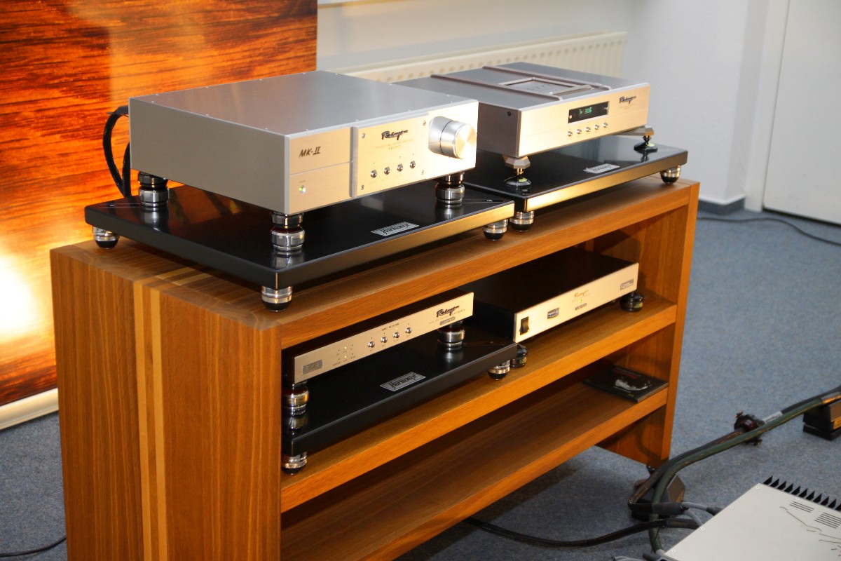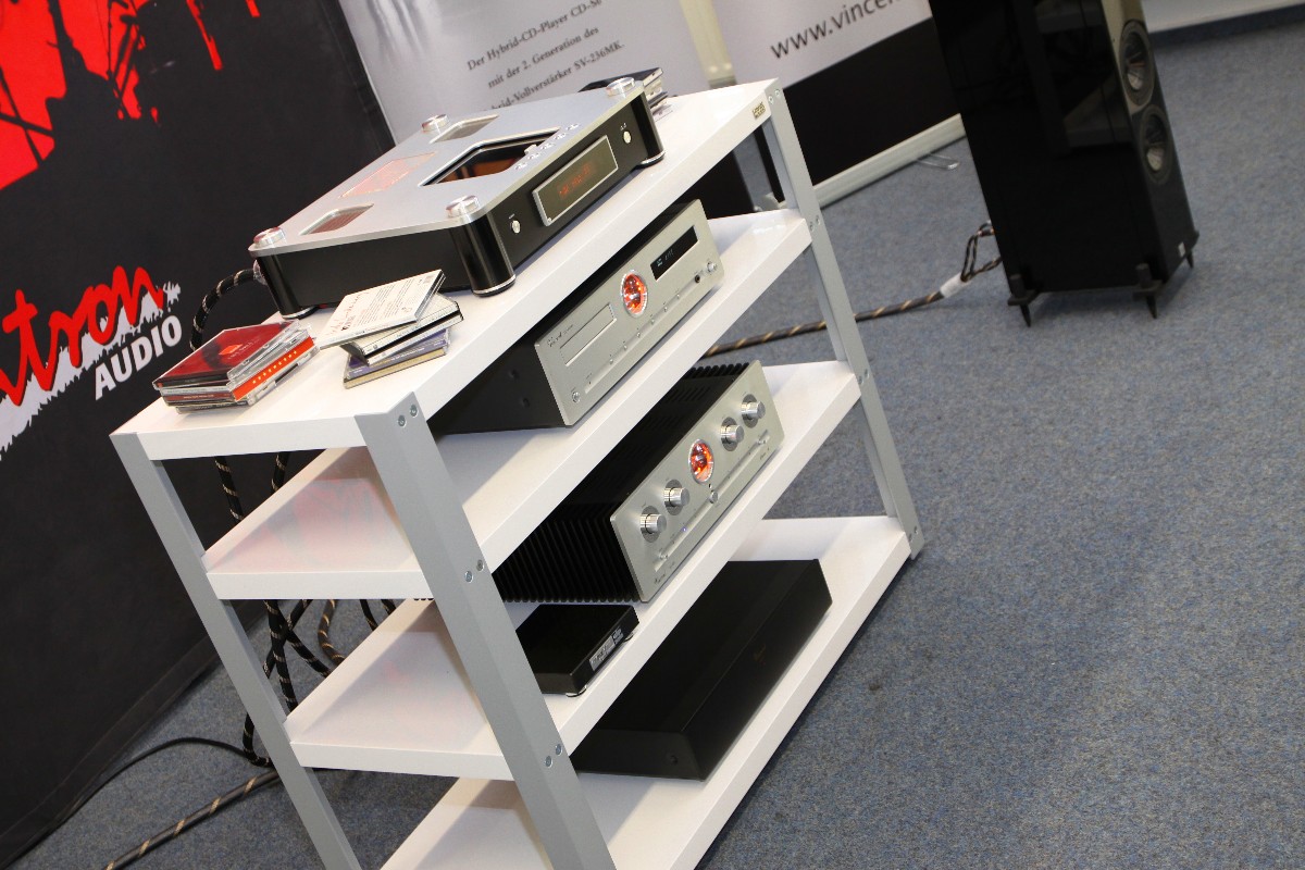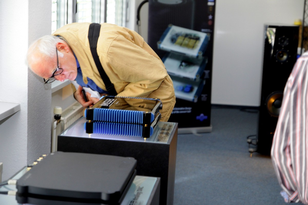 Eine beeindruckende Vorführung gab es auch bei Jürgen Sachweh (hifi2die4) zu belauschen. Dort spielten die High-Tech-Komponenten von MSB Technology aus der Schweiz an Lautsprechern von Eventus Audio. Filigranste Detailverliebtheit, aber auch Wucht und Kontrolle waren hier traumhaft vereint. Bei WOD Audio erfuhren wir, dass ab sofort ein kleines Acryl-Rack für die verblüffenden iFi-Minikomponenten lieferbar ist.