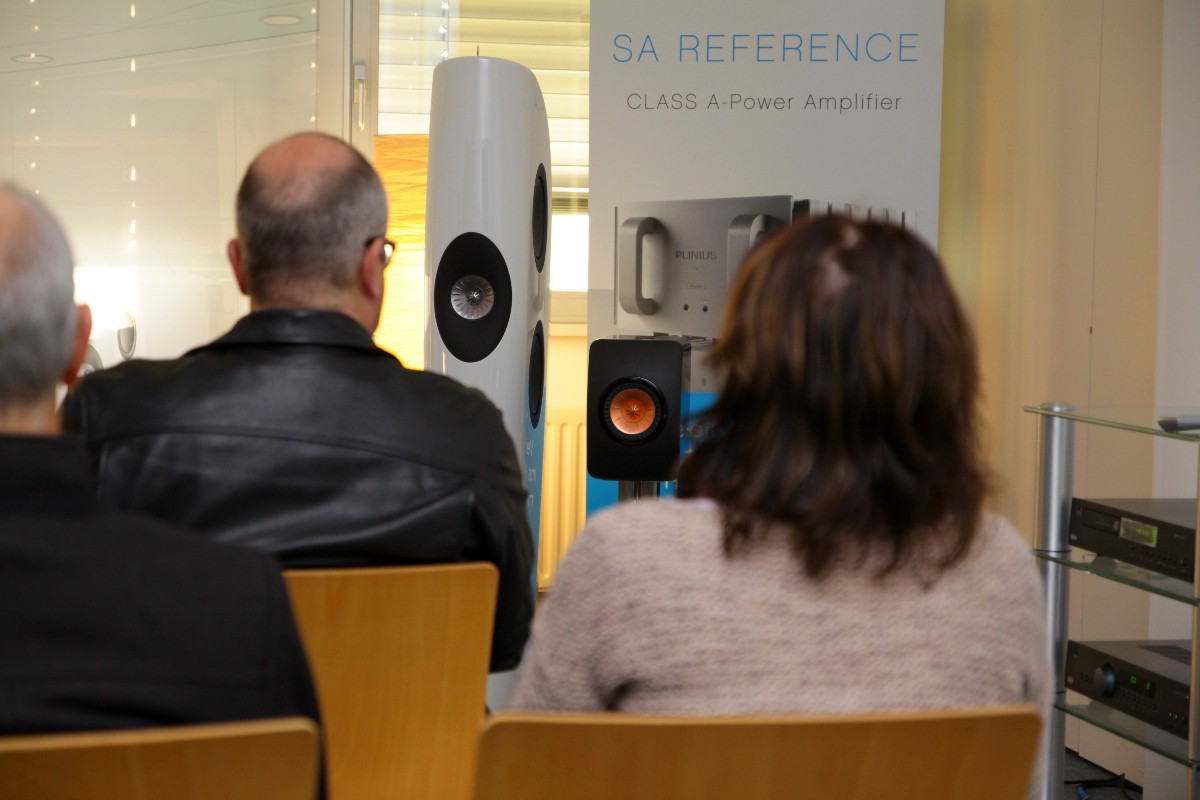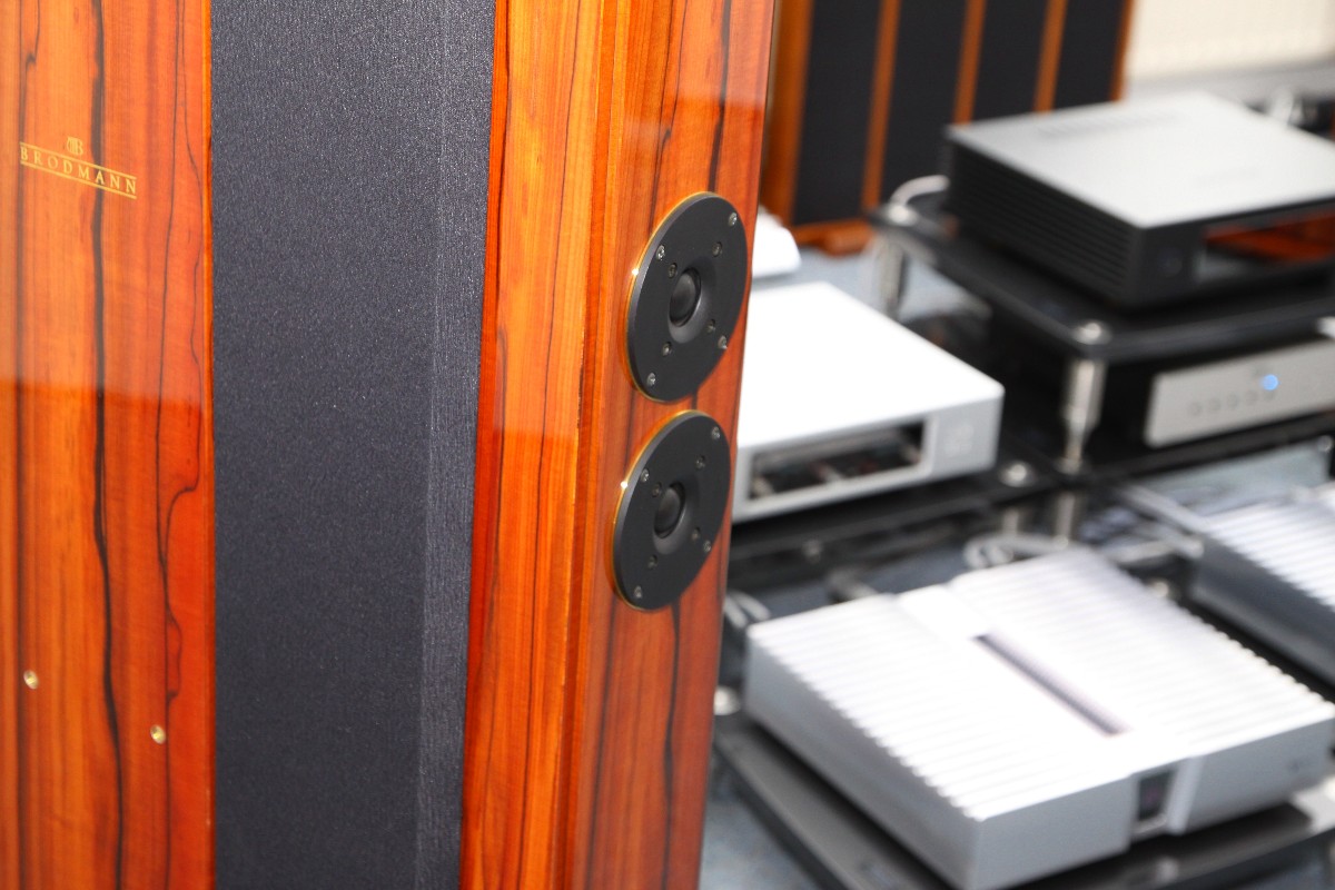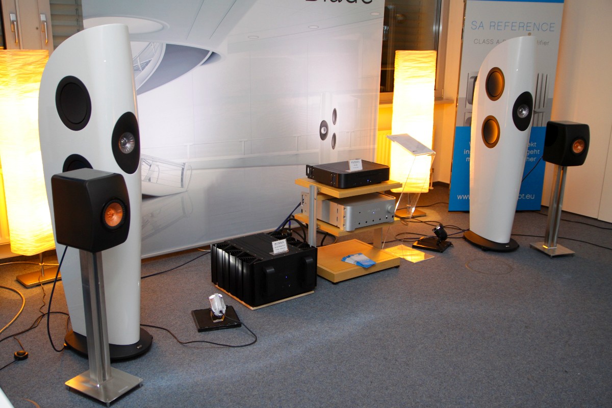 Eine große Überraschung waren auch die Lautsprecher von Hans Deutsch und Brodmann Acoustics, die ab sofort im Vertrieb von Hoergenuss für Audiophile (HGFA) sind. Wer glaubt, diese Lautsprecher eigneten sich nur für moderate akustische Musik, der irrt gewaltig. Jörg Klein von HGFA traute sich tatsächlich, die Brodmänner mit synthetischer Musik regelrecht aufzupumpen. Und siehe da: kein Problem für die wunderschönen Lautsprecher, die sich wohltuend vom Mainstream abheben und irgendwie eher wie ein meisterliches Instrument erscheinen als ein technischer Artikel. Das hat was! Auch das neue Modell Olympica vom Lautsprecherspezialisten Sonus Faber wusste in Kombination mit dem Vollverstärker Intuition 01 von Wadia zu überzeugen. Auffallend ist dabei immer wieder die Selbstverständlichkeit, mit der diese nun wirklich nicht allzu hohen Lautsprecher es immer wieder schaffen, selbst sehr große Räume mit Musik zu fluten.