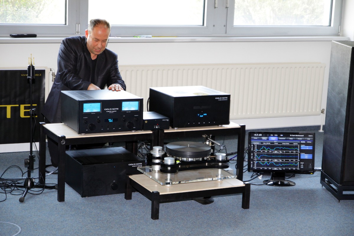 Gut gefallen hat der nagelneue Subwoofer von Martin Logan, der den wunderbaren Elektrostaten aus gleichem Haus die entscheidende Wucht Leben einhaucht, dabei aber im akustischen Sinne völlig „unsichtbar“ bleibt. Eine sehr gute Performance hat auch, wie bereits in Bonn, Gold Note hingelegt. Diese Kette ist mehr als die Summe der Komponenten, und wie Gold Note es schafft, derartige Boxenkisten so zum Singen zu bringen, wird ein ewiges Rätsel bleiben.