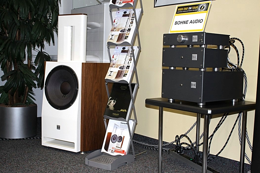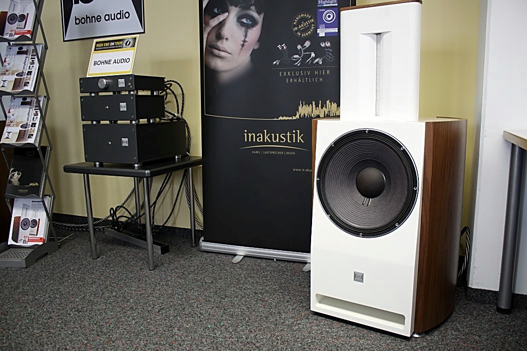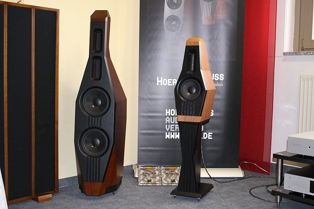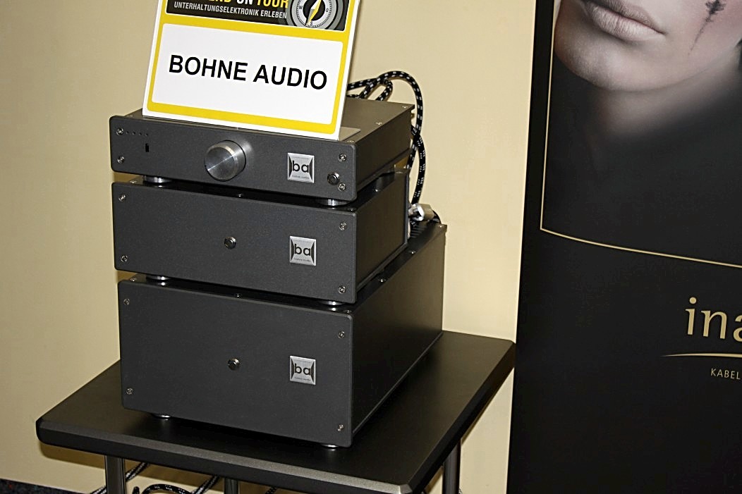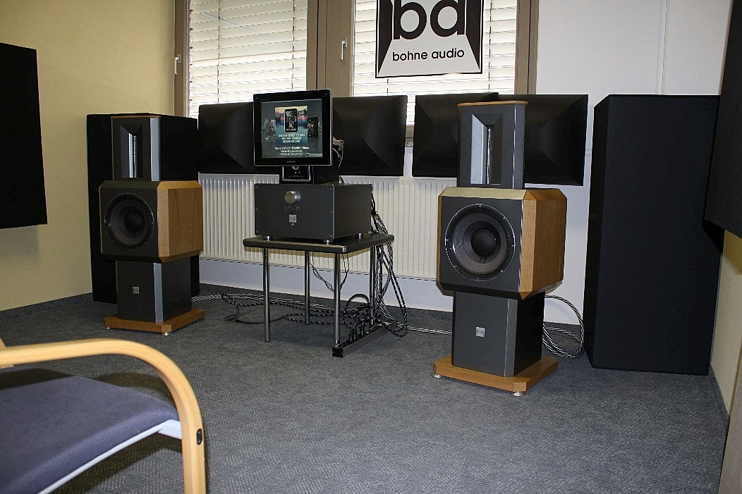 Wie bereits bei den vergangenen Veranstaltungen gab es auch in Nürnberg keine echten Ausrutscher nach unten – eher Ausrutscher nach oben! Eine sehr überzeugende Vorstellung durfte man bei Bohne Audio genießen. Bohne Audio hat sich der Impulstreue und der uneingeschränkten Schnelligkeit der Wiedergabe verschrieben. Kein Wunder, wenn man weiß, dass der Entwickler nicht nur Physiker, sondern auch Schlagzeuger ist. So ließ sich Charly Antolinis „Knock Out“ schier nicht vermeiden. Und gut war’s! Dieses Schlagzeug-Inferno bewegte sich tatsächlich so nah am Original wie man es sich kaum vorstellen kann. Die Bassdrum knochentrocken, wie Schläge in die Magengrube und auch die Snare überdeutlich und physisch spürbar. Vorgeführt wurde das derzeit kleinste System mit einem 12“ Tieftöner vom Spezialisten JBL-Pro und einem ohrenscheinlich überragendem Bändchen aus eigener Entwicklung und Fertigung, das bei rund 1100 Hz einsetzt. FIDELITY hat ein kleines Video gedreht, das die Arbeitsweise des Bändchens im Detail zeigt.