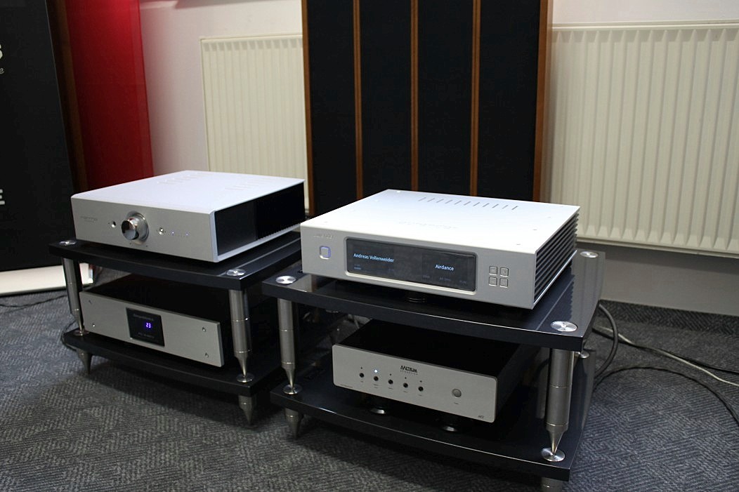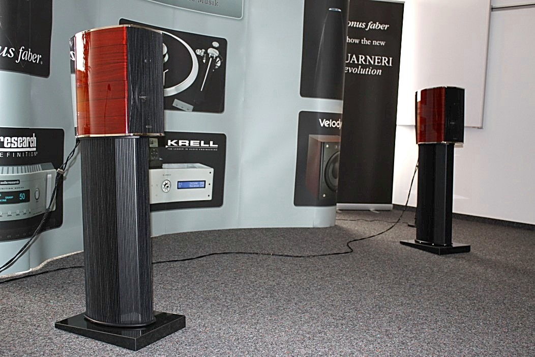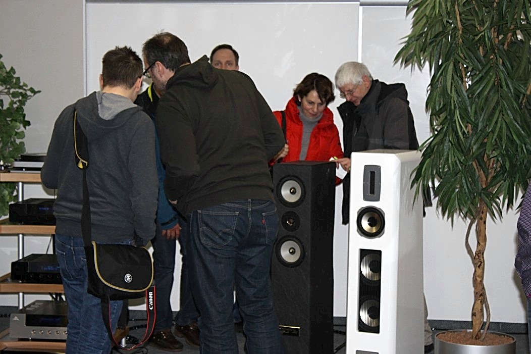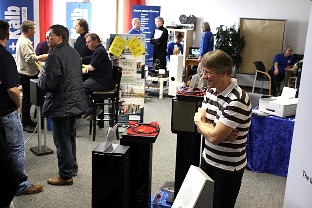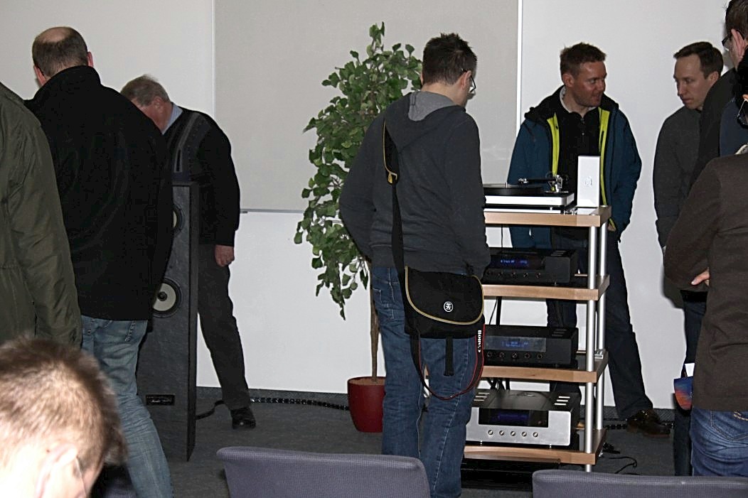 Filigraner und feingeistiger präsentierte sich Audio Reference aus Hamburg. Vorgeführt wurde eine Sonus Faber Guarneri Evolution an einer mächtigen Endstufe von Krell und einem Audio Research Frontend. Die Einspielungen von der Platte (Vinyl) und der Platte (Sooloos) erfreuten im steten Wechsel, und nach dieser Präsentation war es nicht weiter nötig zu erklären, was mit einer aufgeräumten und feinsinnigen Wiedergabe gemeint sein könnte. Das Gehörte sprach vollkommen für sich und ließ keine weiteren Wünsche mehr offen.