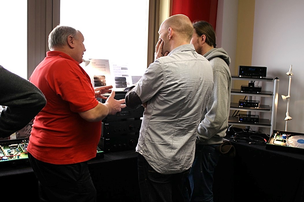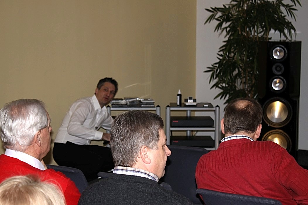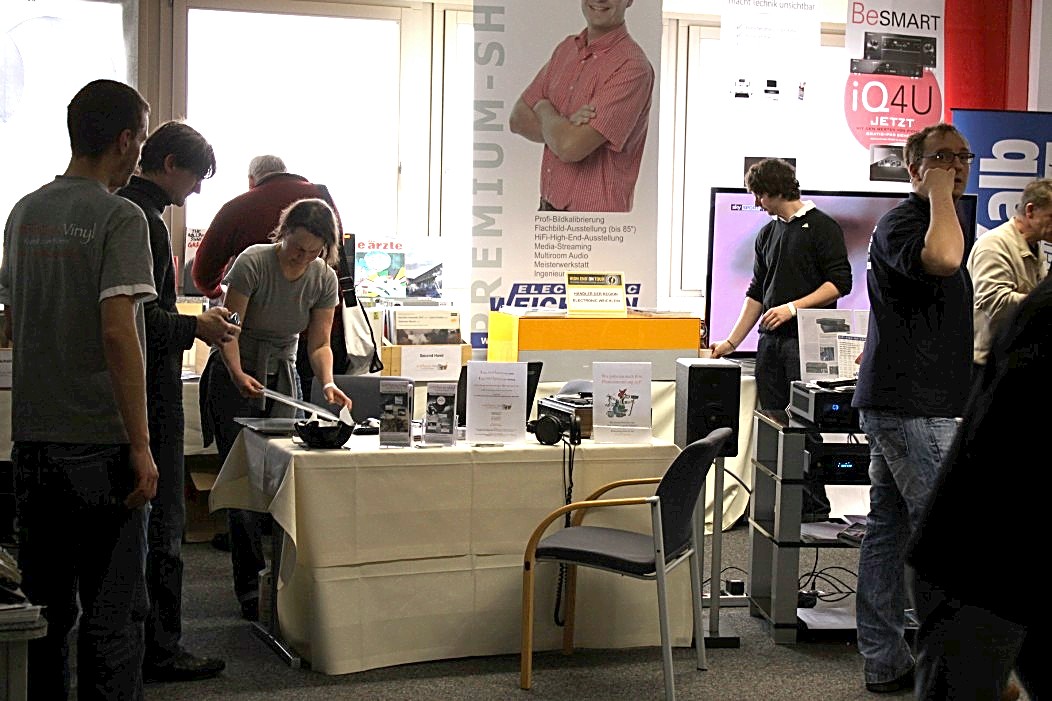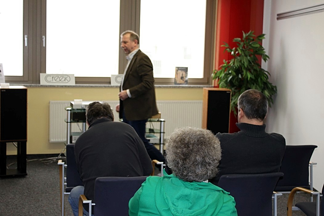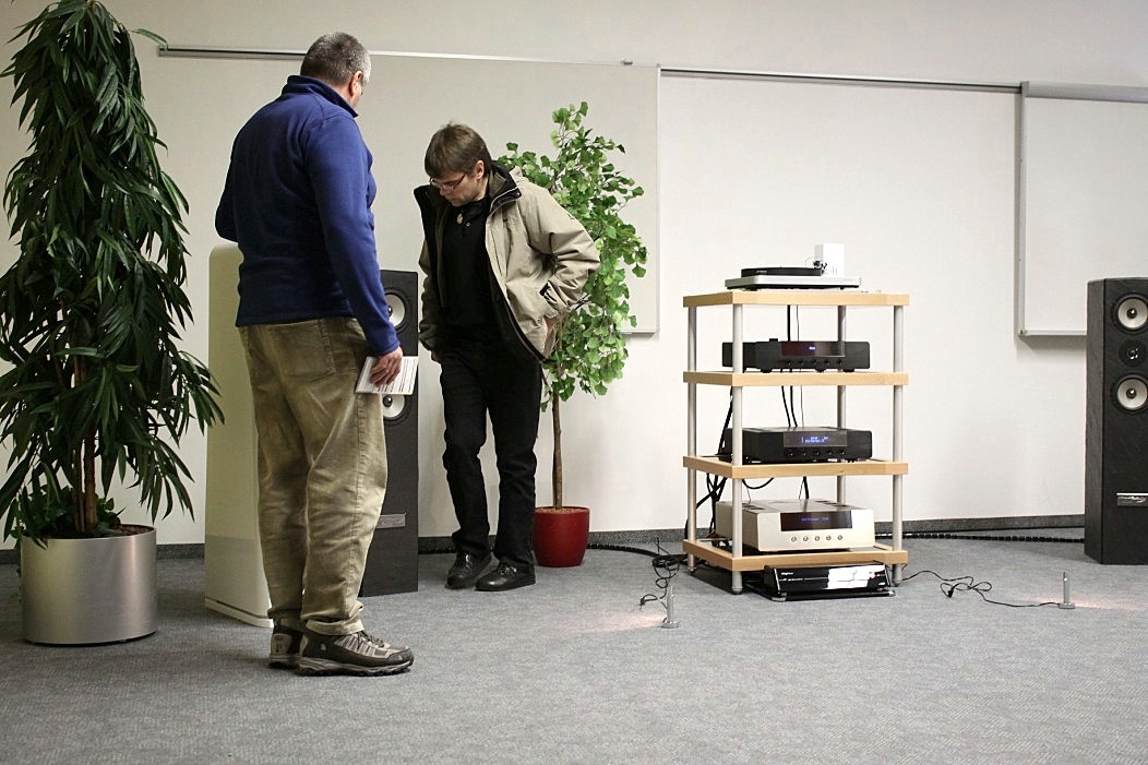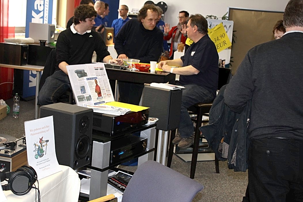 Filigraner und feingeistiger präsentierte sich Audio Reference aus Hamburg. Vorgeführt wurde eine Sonus Faber Guarneri Evolution an einer mächtigen Endstufe von Krell und einem Audio Research Frontend. Die Einspielungen von der Platte (Vinyl) und der Platte (Sooloos) erfreuten im steten Wechsel, und nach dieser Präsentation war es nicht weiter nötig zu erklären, was mit einer aufgeräumten und feinsinnigen Wiedergabe gemeint sein könnte. Das Gehörte sprach vollkommen für sich und ließ keine weiteren Wünsche mehr offen.