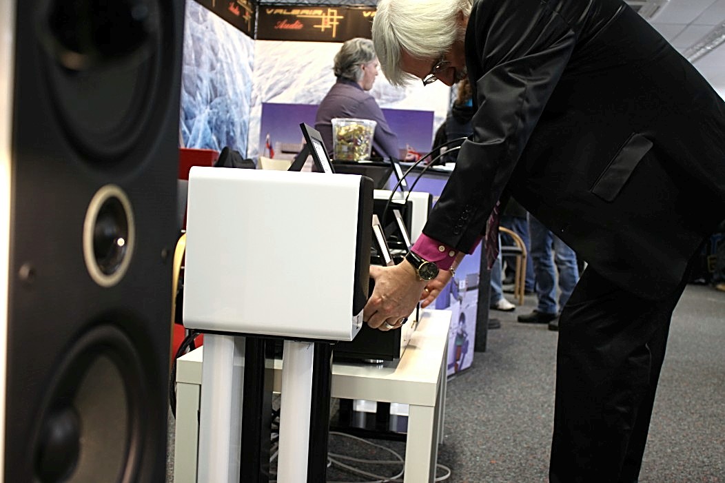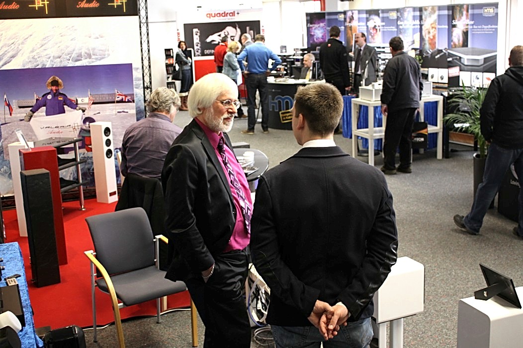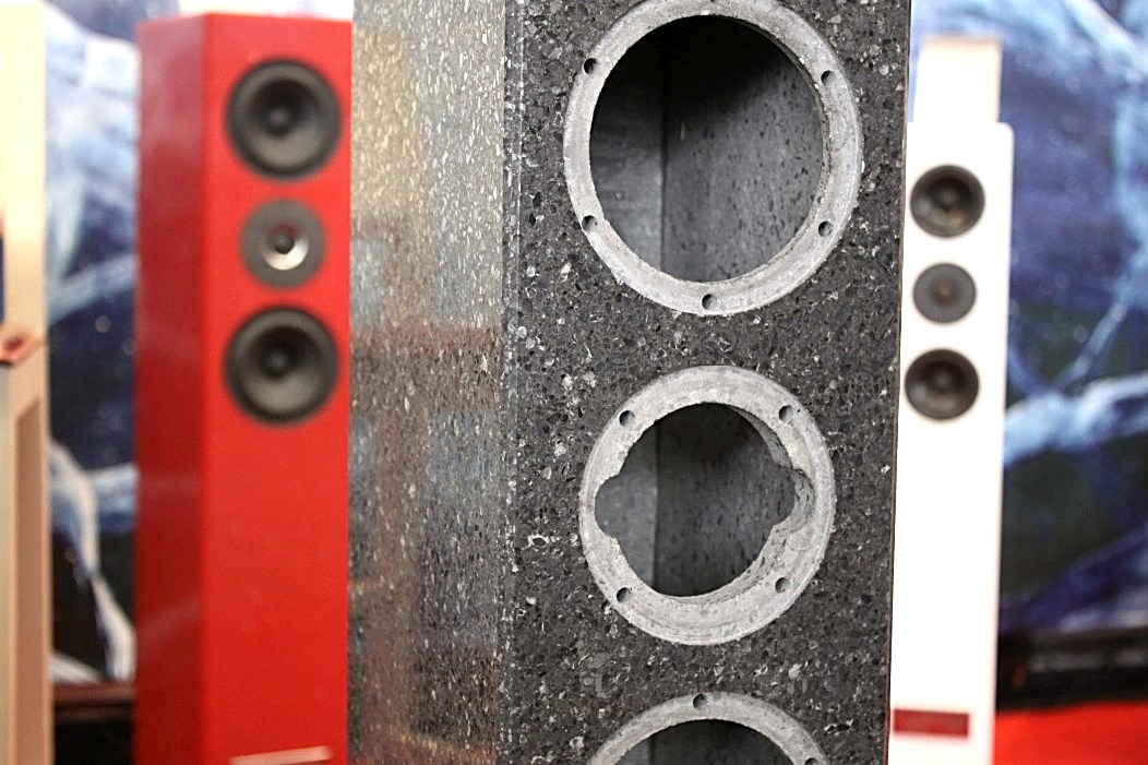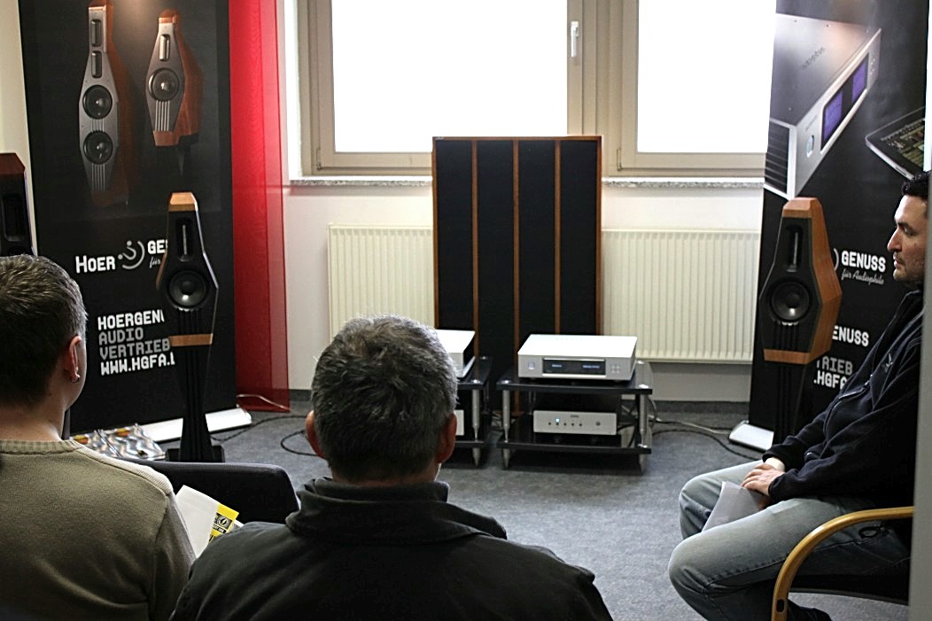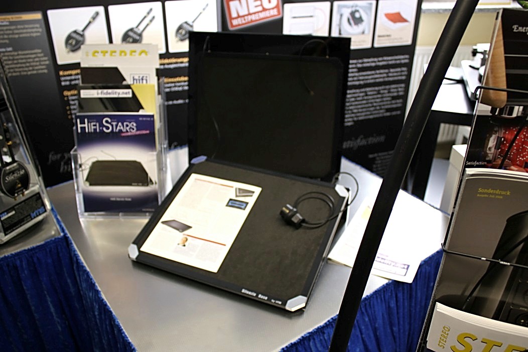 Valeria Audio mit ihren Lautsprechern aus Stein war gleich zweimal vertreten. Zum Einen mit einem Stand, auf dem es neben anderem auch ein Leergehäuse zu bestaunen gab. Zum Anderen hatte Valeria Audio einen Lautsprecher in der Vorführung der High End Society. Dort zelebrierte Branko Gliesovic den guten Ton und wusste mit seinem umfangreichen Hintergrundwissen zur Musik die Zuhörer auf’s Allerbeste zu unterhalten und zu begeistern.