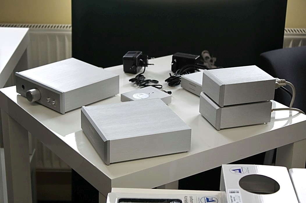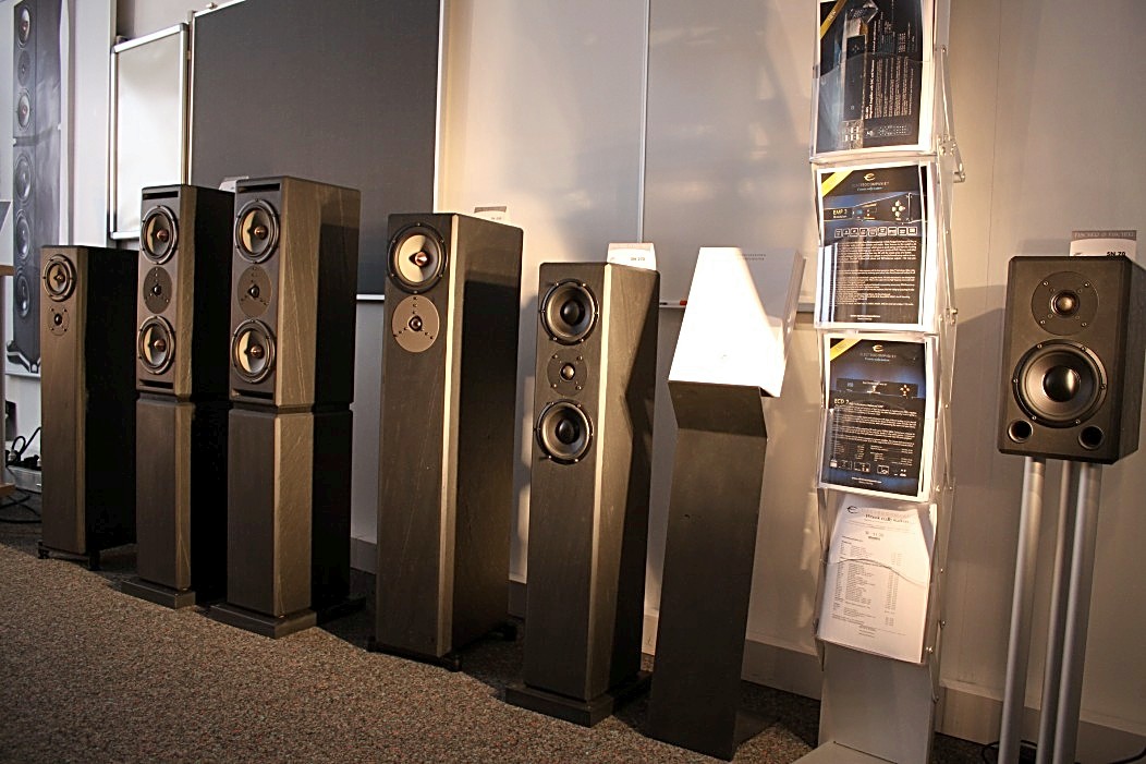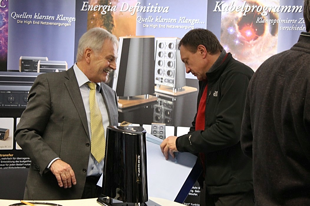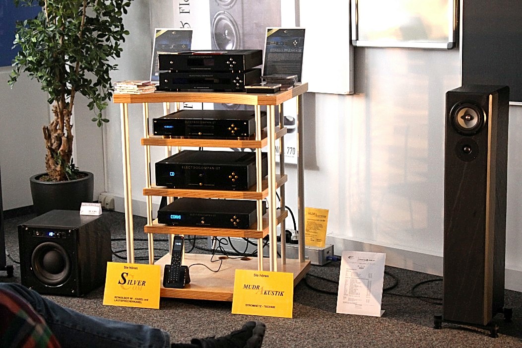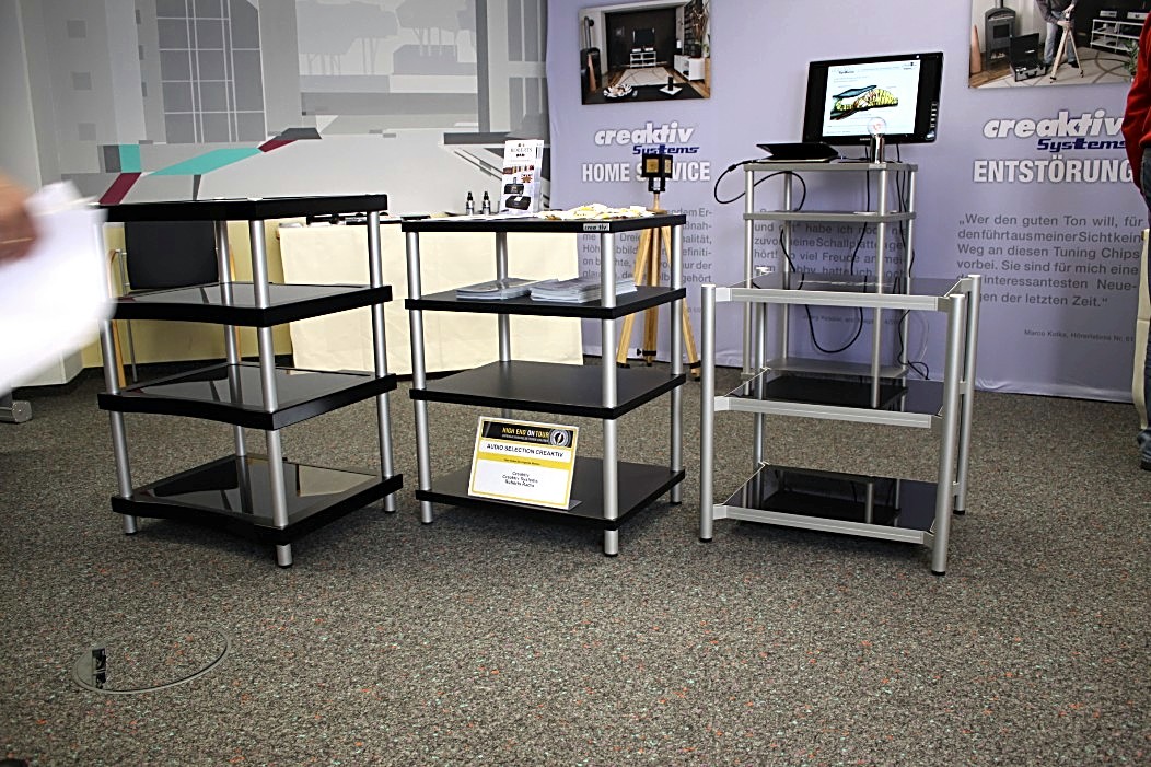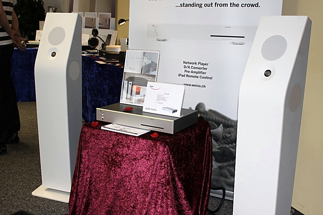 Valeria Audio mit ihren Lautsprechern aus Stein war gleich zweimal vertreten. Zum Einen mit einem Stand, auf dem es neben anderem auch ein Leergehäuse zu bestaunen gab. Zum Anderen hatte Valeria Audio einen Lautsprecher in der Vorführung der High End Society. Dort zelebrierte Branko Gliesovic den guten Ton und wusste mit seinem umfangreichen Hintergrundwissen zur Musik die Zuhörer auf’s Allerbeste zu unterhalten und zu begeistern.