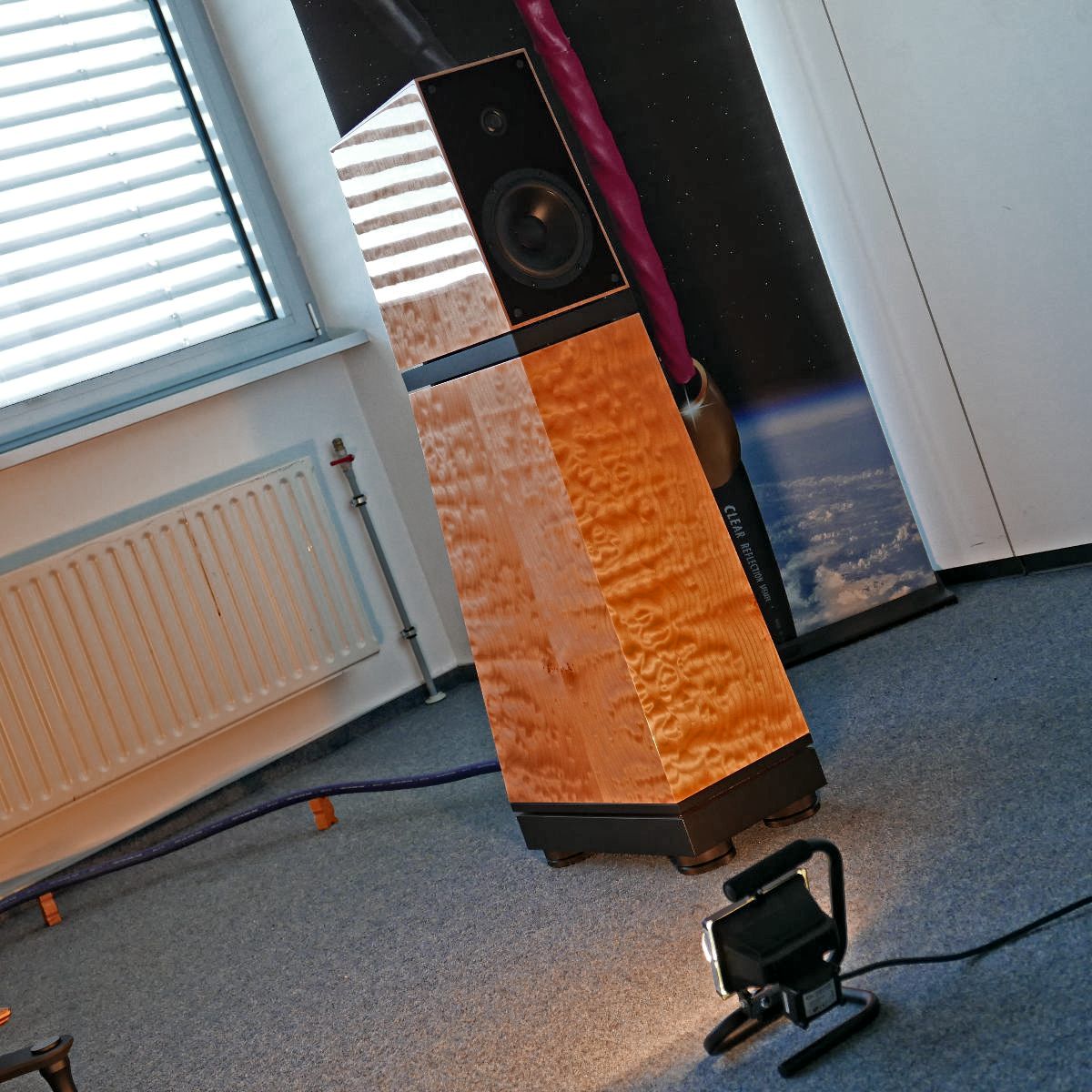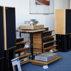 Ratlos hat uns die Präsentation von Newtronics gemacht: ein strammer Transmissionline-Lautsprecher mit AMT, angetrieben von acht Endstufen. Keine schlechten Voraussetzungen, sollte man meinen, und ordentlich laut war’s natürlich auch. Das Klangerlebnis war jedoch von der Sorte „kann man mögen – muss man aber nicht“. Sorry, aber wahrscheinlich haben wir da etwas nicht verstanden.