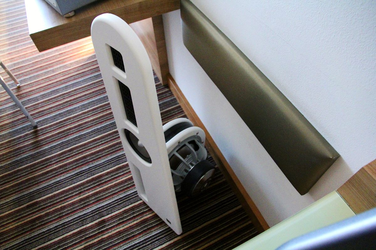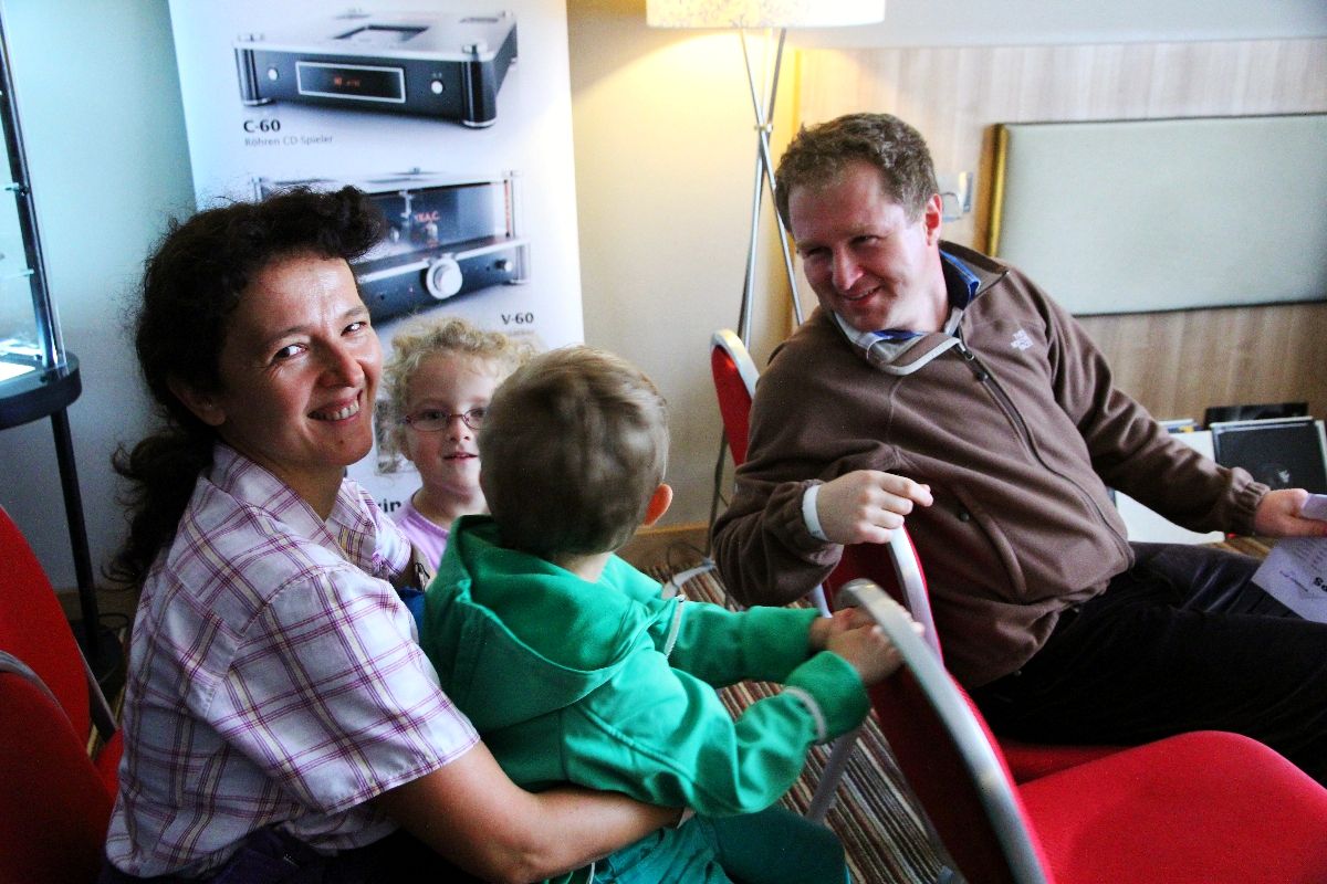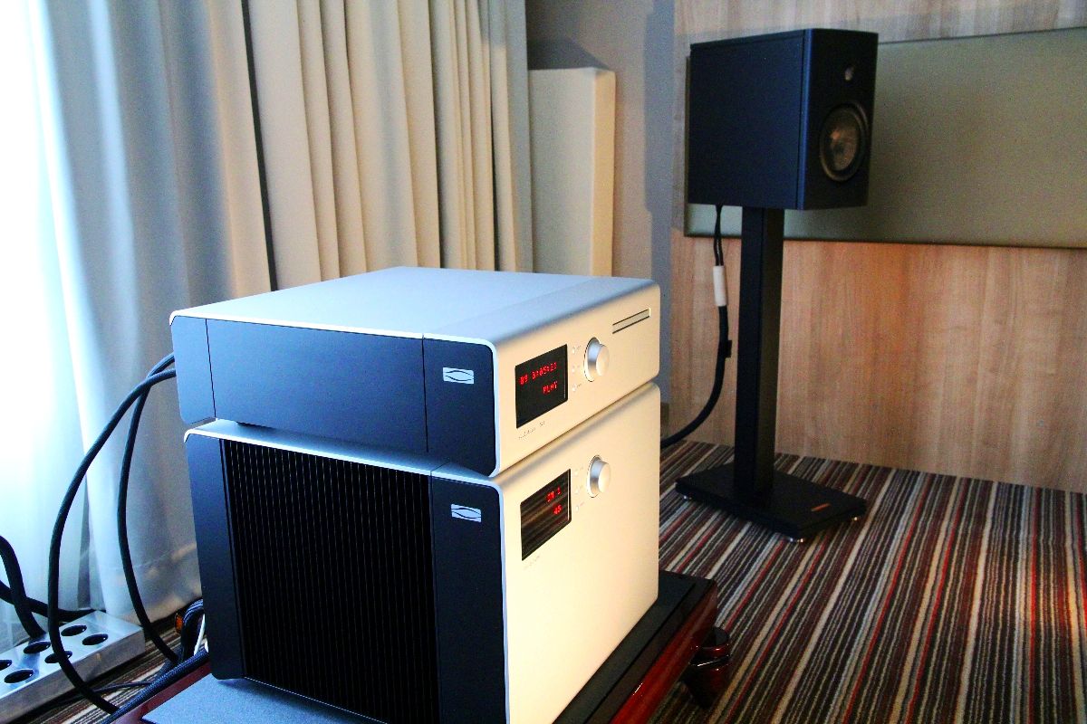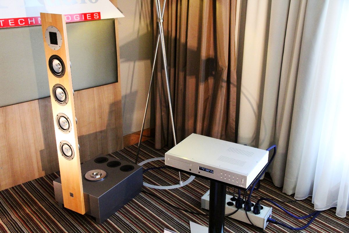 An seinem Stand in den „Zürich“-Räumen des Hotels ließ es sich Phonosophie-Chef Ingo Hansen nicht nehmen, zunächst mein musikbestücktes Smartphone zu „entstören“ und sodann einen spürbar stimmstärkeren Tom Waits über ein Pärchen erstaunliche Aktivlautsprecher mit Bambusgehäuse in den Ausstellersaal zu entlassen. Die Standnachbarn nahmen’s erstaunlich cool, darunter auch Andreas Schönberg von Audio Exclusiv, der den brandneuen CD-Player P8 auch tatsächlich über seine Elektrostaten erklingen ließ.