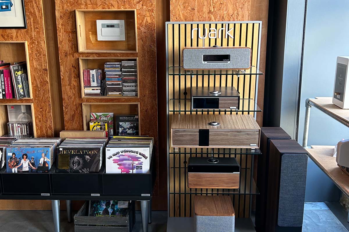 Ich treffe Graeme an einem Dienstagmorgen im Spätsommer. Gerade hat er die Rollläden des Schaufensters hochgezogen. Ein kleiner, modern und doch rustikal gestalteter Ausstellungsraum mit vielen bekannten, auch etlichen britischen Marken wie Naim, Arcam oder Fyne Audio. Einige Kisten mit Schallplatten stehen an einer Wand, dahinter ein Regal mit CDs, hier ein wenig Home Audio von Ruark, dort ein VPI-Plattenspieler. Im Hörraum dahinter steht eine Anlage spielbereit.
