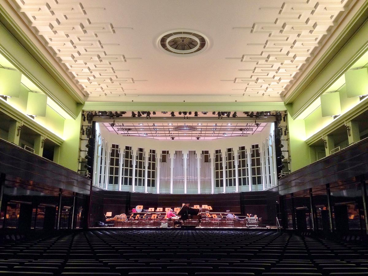 Hinter der Bühne ist es leider eng und winkelig, diesem Saal verzeihe ich das aber sofort, denn das Erlebnis auf der Bühne ist jede Mühe wert. Mit seinen 1400 Plätzen ist der Große Saal gerade noch so klein, dass sich eine gewisse Nähe zum Publikum einstellt; allerdings auch schon so groß, dass sich selbst bei höheren Lautstärken nicht die Decke hebt. Ideal also für die allermeisten Erfordernisse.