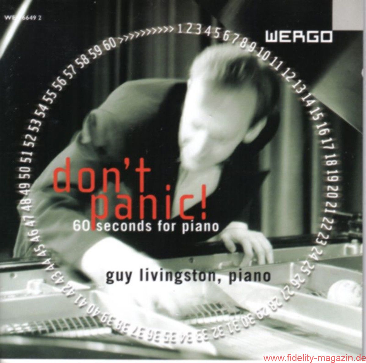 Das einzig Blöde an Mahler ist: die Länge. Denn ich bin ja an und für sich eher ein ungeduldiger Mensch. 20 kurze Mahler-Adagios hintereinander wären mir lieber. Auch eine Depression will schließlich unterhalten werden: Also schalte ich jetzt um aufs Kurzweil-Programm. Noch eine Flasche Valdepeñas (Gran Reserva) geköpft und rein in den Wahnsinn, wo er am wildesten tobt! Wie wäre es zum Beispiel mit Don’t Panic!, einer Versammlung von 60 Klavier-Miniaturen? Der klassische Pianist Guy Livingston hat dafür 60 Komponisten um je ein Ein-Minuten-Stück gebeten – und bekam Meditatives, Dadaistisches, Motorisches, Romantisches, Minimalistisches, Virtuoses, Atonales und Tänzerisches. Da gibt es ein Kükenballett von William Bolcom, ein Katzenstück von Ketzel Cotel, einen Saltarello von Giovanni Mancuso, einen Cowboy-Song von Charles Shadle, manches Ragtime-Ähnliche und diverse Walzer. Das alles im Minutentakt: Mahler könnte sich da eine Scheibe abschneiden! Vielleicht noch nie waren auf einer einzigen CD so viele Meisterwerke beisammen. Moritz Eggert liefert in seinen 60 Sekunden sogar gleich 60 „Stücke“ auf einmal, komplett mit Ansagen!