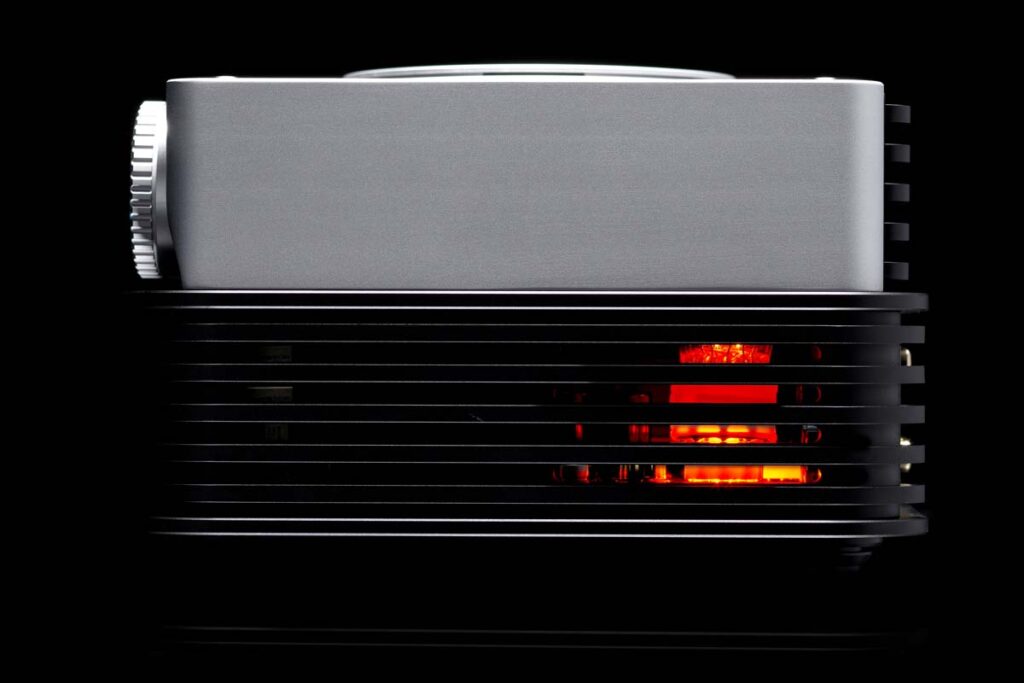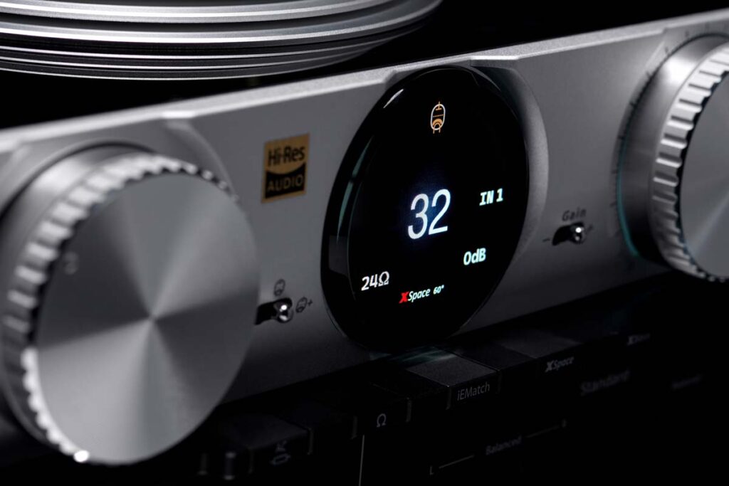 Dominant sind die beiden großen Drehschalter für die Eingangswahl und die Lautstärke. So weit, so normal. Dazwischen geht es allerdings schon los: Über einen kleinen Schalter lässt sich der Gain in Schritten von neun Dezibel verstellen, und auf der anderen Seite versteckt sich ein kleiner Kippschalter, der den Phantom so einzigartig macht. Hier kann man zwischen unterschiedlichen Eingangsstufen (richtig gelesen) wählen und somit entscheiden, ob eine straighte Transistorstufe, eine eher warme Röhrenschaltung oder eine „Tube+“ genannte, sehr charmant agierende Röhrenstufe die Arbeit übernimmt und damit den Klang von Beginn an grundsätzlich in unterschiedliche Richtungen lenkt. Des Weiteren kann man wie bei den aus dem Studiobereich bekannten Verstärkern von SPL mit einer Crossfeed-Schaltung den Raumeindruck in vier Stufen modifizieren. Das kann je nach Aufnahme gar nichts bringen oder den akustischen Knoten platzen lassen. Auf jeden Fall hat man auch hier die Wahl, und die Zahl der „unanhörbaren“ Alben im Regal wird deutlich kleiner ausfallen. Eine Funktion, derer ich mich weniger annahm, nennt sich „xBass“ und produziert genau das: viel Bass. Immerhin differenziert, und man hat die Wahl zwischen drei verschiedenen Frequenzen, bei denen die Anhebung stattfinden soll. Ich kann mir vorstellen, dass einige totproduzierte Pop-Alben der 80er Jahre davon profitieren können. Mein Schrank brachte keine Produktion hervor, die dieser Hilfe bedurft hätte. Meine Tochter allerdings war davon bei einem aktuellen Taylor-Swift-Album mehr als begeistert.