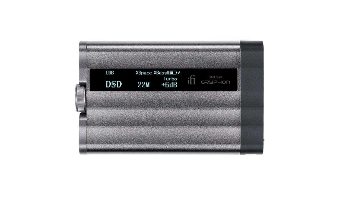 Der xDSD Gryphon verfügt auf der Stirnseite über einen Multifunktion-Drehgeber und ein paar Taster. Dezent ins Gehäuse integriert wurde ein OLED Display, welches alle relevanten Informationen klar ablesbar bereithält. Hier setzt iFi Audio auf die SilentLine Technology, welche keine negativen Auswirkungen des Displays auf die Signal Verarbeitung zulässt. Natürlich können Sie das Display auf Wunsch deaktivieren.