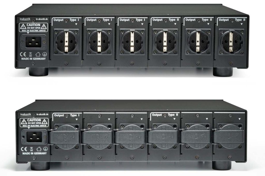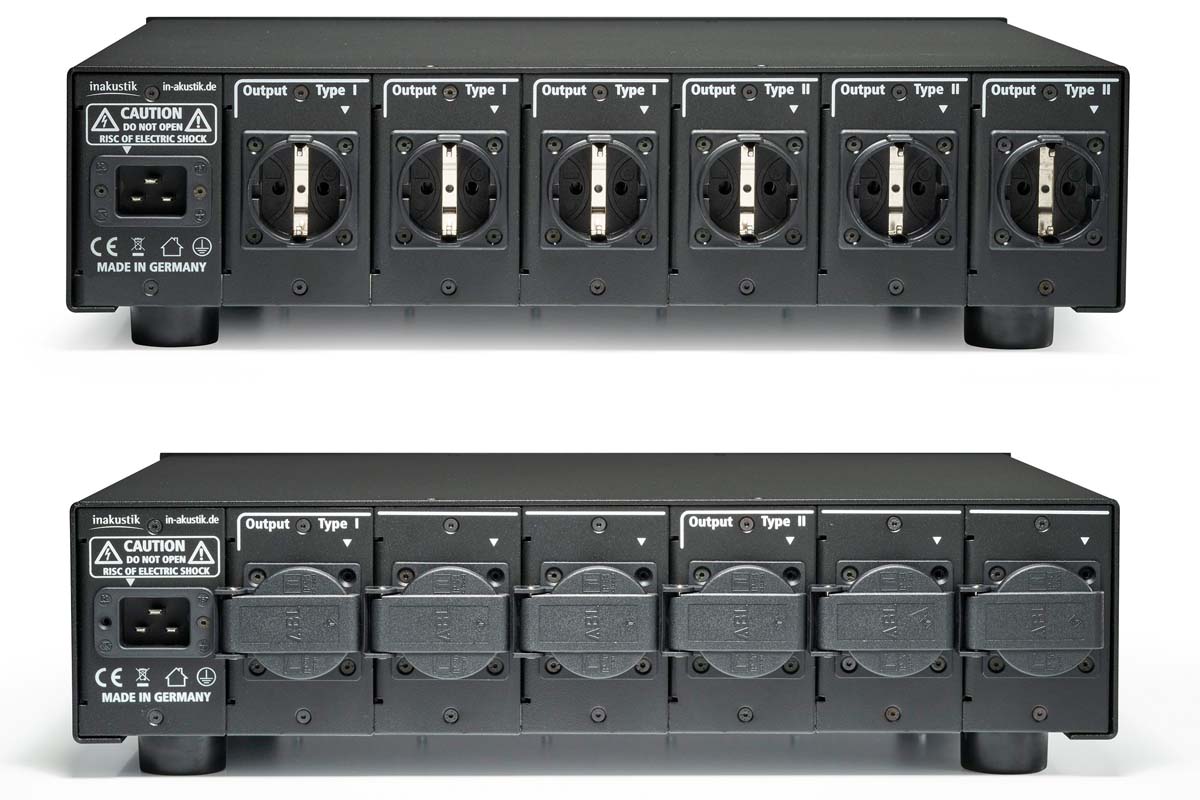 Beherbergt ist die Technik in einem soliden Metallgehäuse mit gebürsteter, schwarz eloxierter Aluminium-Front. Auf der Rückseite stehen bis zu sechs hochwertige Steckdosen zur Verfügung, welche gruppenweise voneinander abgeschirmt sind. Dank der zentralen Hochstrom-Netzanschlussdose (IEC C20) kann die Zuleitung bei Bedarf bequem ausgetauscht werden – z. B. durch ein längeres Kabel.