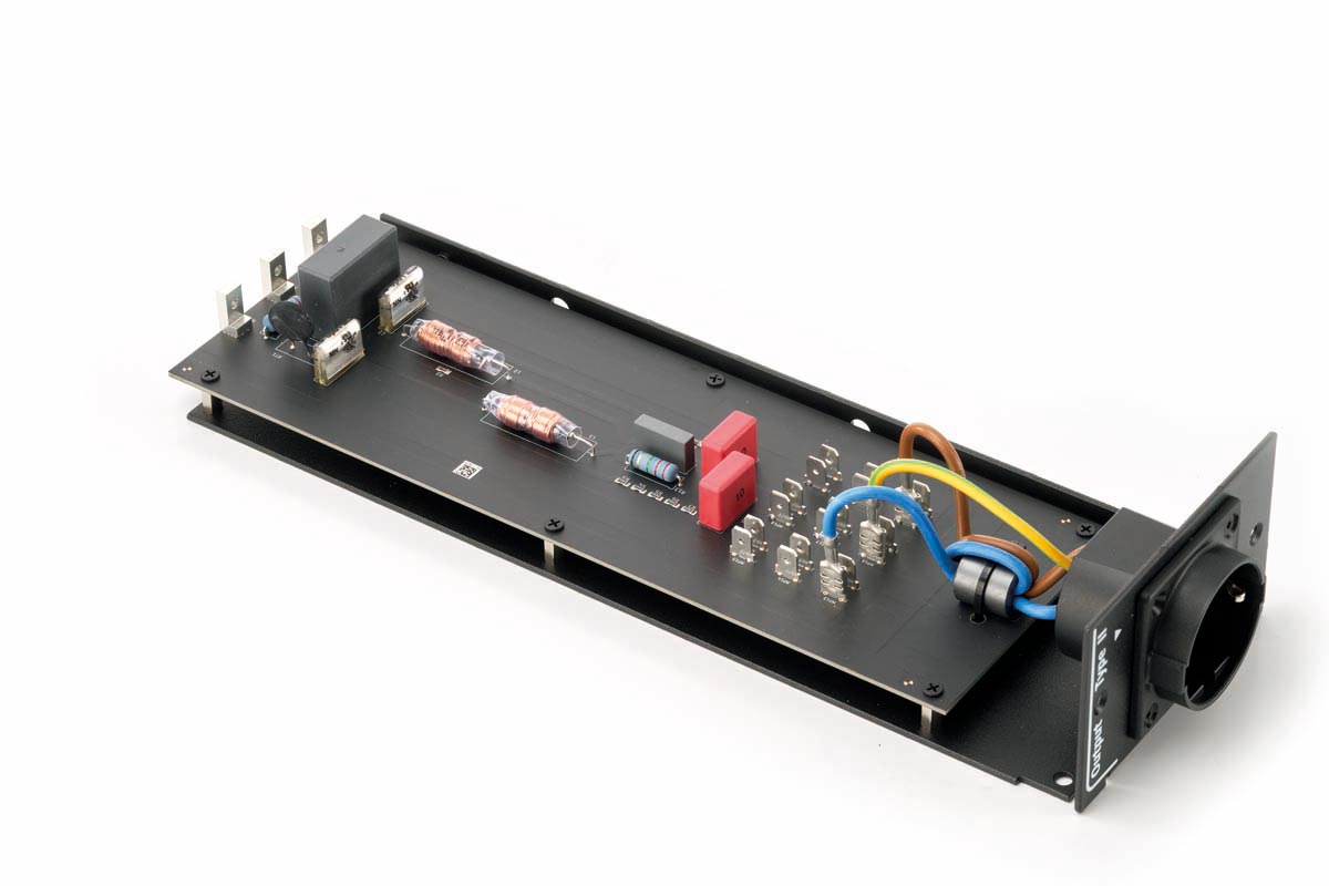 Das zwei Millimeter starke und tadellos verarbeitete Metallgehäuse besitzt mit seiner acht Millimeter dicken, gebürsteten (in Schwarz oder Silber erhältlichen) Aluminium-Frontplatte eine komponentengerechte Größe und passt mit seinen Abmessungen von ca. 450/386/122 Millimetern (B/T/H) sehr gut in viele HiFi-Racks. Solide 15 Kilogramm (in der Vollausstattung) bezeugen den Materialaufwand. Bei der Besetzung der Filterplätze kommt es – wie oben schon erwähnt – auf den Einzelfall an, das Gerät lässt sich je nach Bedarf bestücken. Spielen wir die typische Situation einer HiFi-Anlage einfach mal durch. Entweder gibt es einen Vollverstärker oder eine Stereo- bzw. zwei Mono-Endstufe/n wie dann auch notwendigerweise einen Vorverstärker. Zur Vollständigkeit wollen wir die Alternative aktiver Lautsprechersysteme nicht vergessen. Meist tummelt sich eine Phonosektion in der Nähe einer digitalen Quelle namens CD-Player – auch hier gibt es bekanntlich wieder mehrere Möglichkeiten mittels eines DAC und eines externen Laufwerks –, gegebenenfalls nicht zu vergessen entsprechende Geräte, die „Musik aus der Luft“ verarbeiten können.
