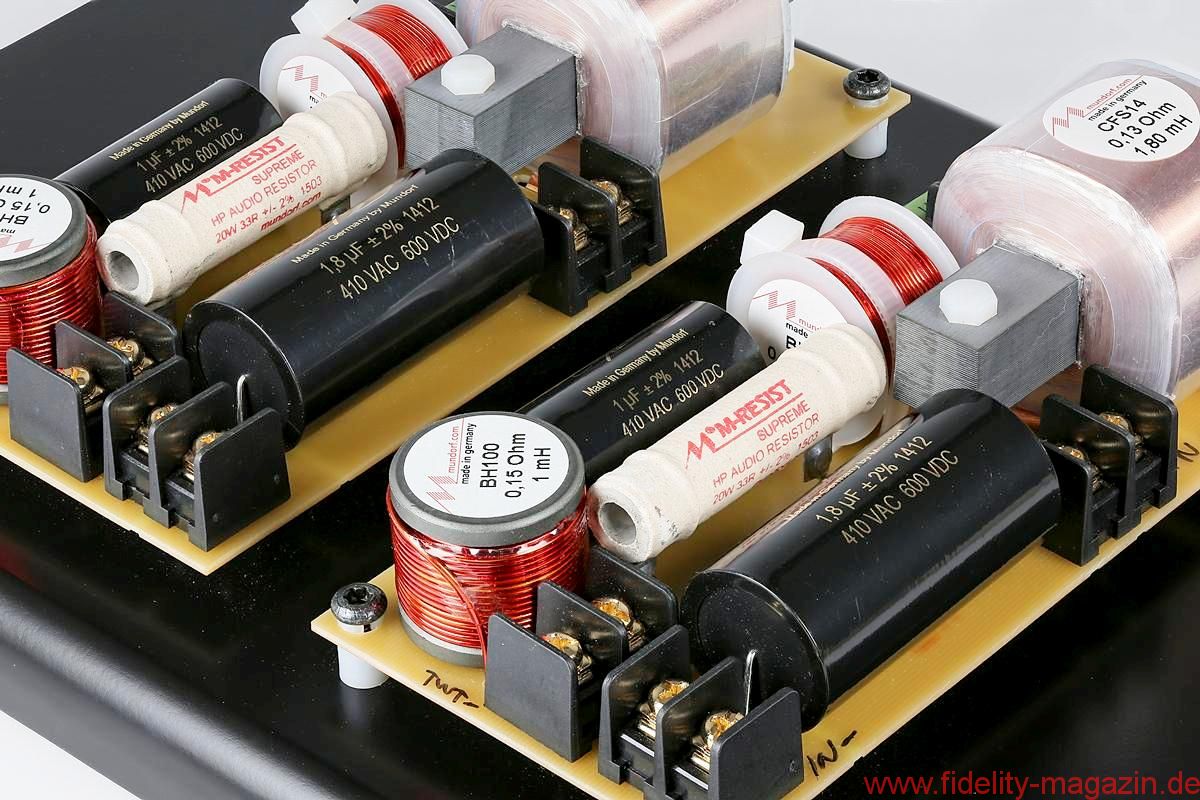 Inklang 13.2 Advanced LineCarstensen ist leidenschaftlicher Musikliebhaber und stellt highendige Ansprüche an seine Lautsprecher. So bewohnen die passiven Frequenzweichen, die grundsätzlich mit hochwertigen Bauteilen, etwa von Mundorf, bestückt sind, eine eigene Kammer im mehrfach versteiften Gehäuse, direkt hinter den Bi-Wiring-Terminals mit den stabilen vergoldeten Brücken. Für knapp 100 Euro bietet Inklang noch ein sogenanntes Referenz-Upgrade an, das nochmals bessere Weichenbauteile umfasst und durch ein kleines Textilfähnchen erkennbar wird. Logisch, dass wir diese Option angekreuzt haben. Für Kurzentschlossene ist das Referenz-Upgrade bis zum 23.12.2016 übrigens kostenlos zu bekommen, dazu müssen Sie lediglich einen Gutscheincode über die Homepage von Inklang anfordern.