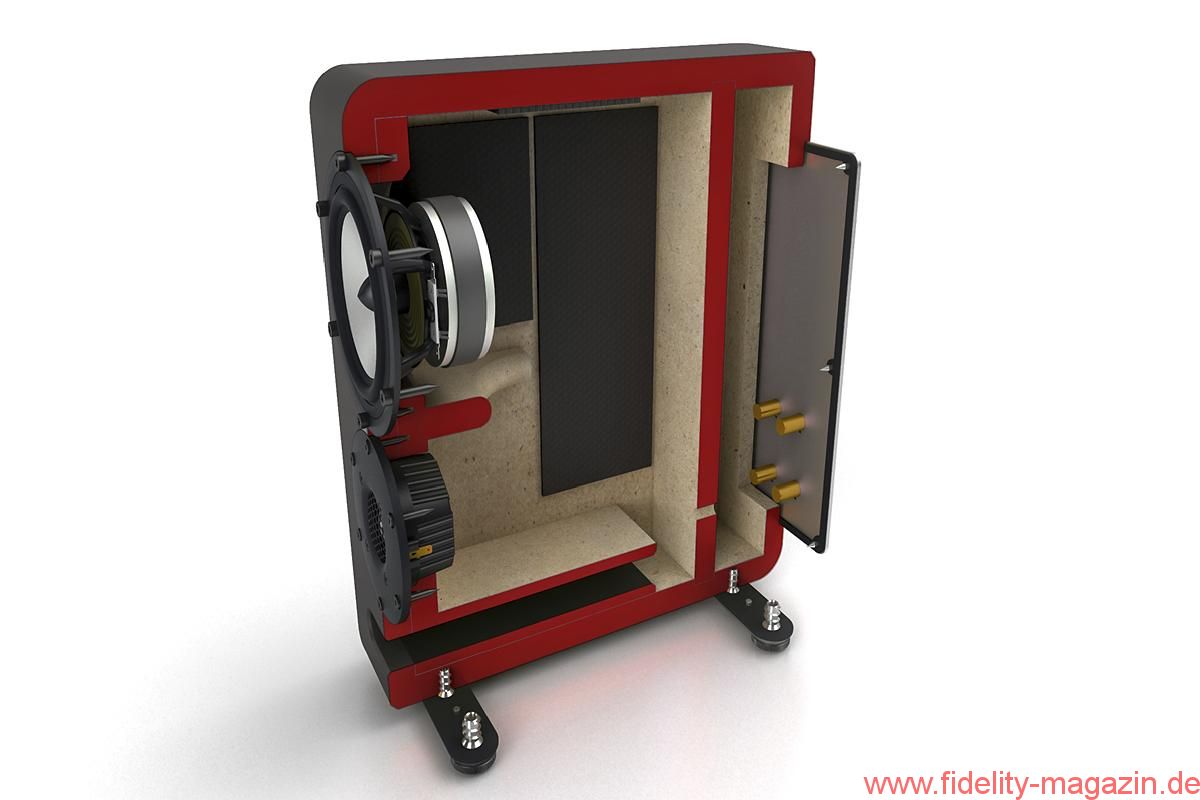 Inklang 13.2 Advanced LineIn natura zeigen sich die 13.2-Monitore wirklich exzellent verarbeitet. Statt runder Kanten ziert eine umlaufende Fase die Vorder- und Oberseite der schmalen Gehäuse, Fugen oder verleimte Stoßkanten sind weder sicht- noch fühlbar, selbst das rückwärtige Anschlussfeld ist praktisch stufenlos versenkt. Sicherlich hätte man auch die Schrauben des Tiefmitteltöners auf der Front versenken können – was aber weniger Anlass zur Kritik, als vielmehr persönliche Geschmacksfrage ist.