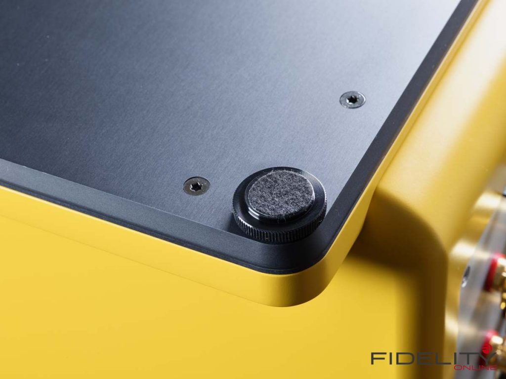 An der perfekt in fünf Schichten aufgetragenen Lackierung fällt zuerst auf, was hier für ein Fertigungsaufwand betrieben wurde. Je näher man der Box dann kommt, desto mehr Liebe zum Detail wird sichtbar: Sowohl die Chassis als auch die Montageplatte der Lautsprecheranschlüsse sind bündig in die die seidenmatt glänzende Oberfläche versenkt. Eine vertrauensfördernde Standfläche aus Aluminium fügt sich nahtlos an den Gehäusefuß und verleiht der schlanken Box die nötige Bodenständigkeit. Besonders erfreulich sind die reibungslos laufenden Gewinde der Standfüße, dank derer eine aus-balancierte Aufstellung zum Kinderspiel wird. Die Leidenschaft fürs perfekte Produkt zeigt sich in eben solchen Details und vermittelt das schöne Gefühl, etwas von Dauer erworben zu haben.
