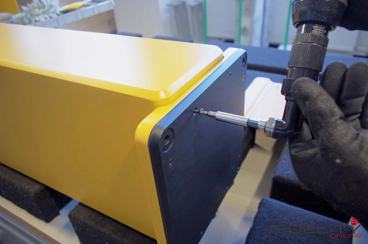 Die Advanced Line 13.3 wurde mit Fast-Vollausstattung von der Redaktion geordert: Akzentfarbe Senfgelb (70 Euro), Referenz-Upgrade der Frequenzweichen (360 Euro), schwarz eloxierte Sockelplatte und Standfüße (alternativ in Alu natur ohne Aufpreis). Macht alles in allem gut 4000 Euro, eine durchaus ernsthafte Summe zwar, doch in Relation zu gebotener Exklusivität, Verarbeitung und Qualität der Bauteile auch eine reizvolle Versuchung – obwohl die Lautsprecher bislang noch keinen Ton von sich gaben. Das wird sich bestimmt gleich ändern, doch das Auge hat davon unabhängig schon mal ein positives Urteil gefällt.