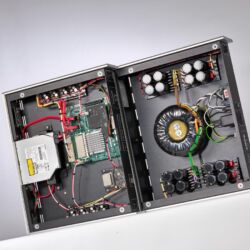 Und genau dort, in den Controllern, sitzt der nächste Trick der Hardware. Beide wurden um ultrapräzise OCXO-Clocks (durch Kapselung temperaturstabilisierte Quarze) ergänzt, die den LAN-Eingang sowie den USB-Abgriff des Statement „re-clocken“, seine Signale neu takten und dabei von Jitter und Störungen reinigen. Und beim Webstreaming wirken beide Re-Clocker auf das Signal, erst am LAN-Ein- und schließlich am USB-Ausgang, der während des Tests meistens mit Auralics Aries G2 verbunden war.
