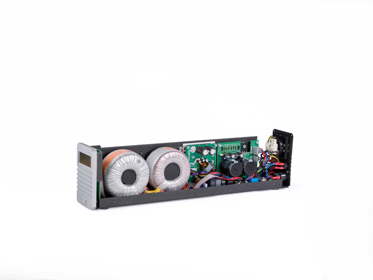 Funktionsprinzip: Sinuswellengenerator, baut den Netzstrom völlig neu auf, neun integrierte Filter sorgen für bis zu 8 dB Störunterdrückung