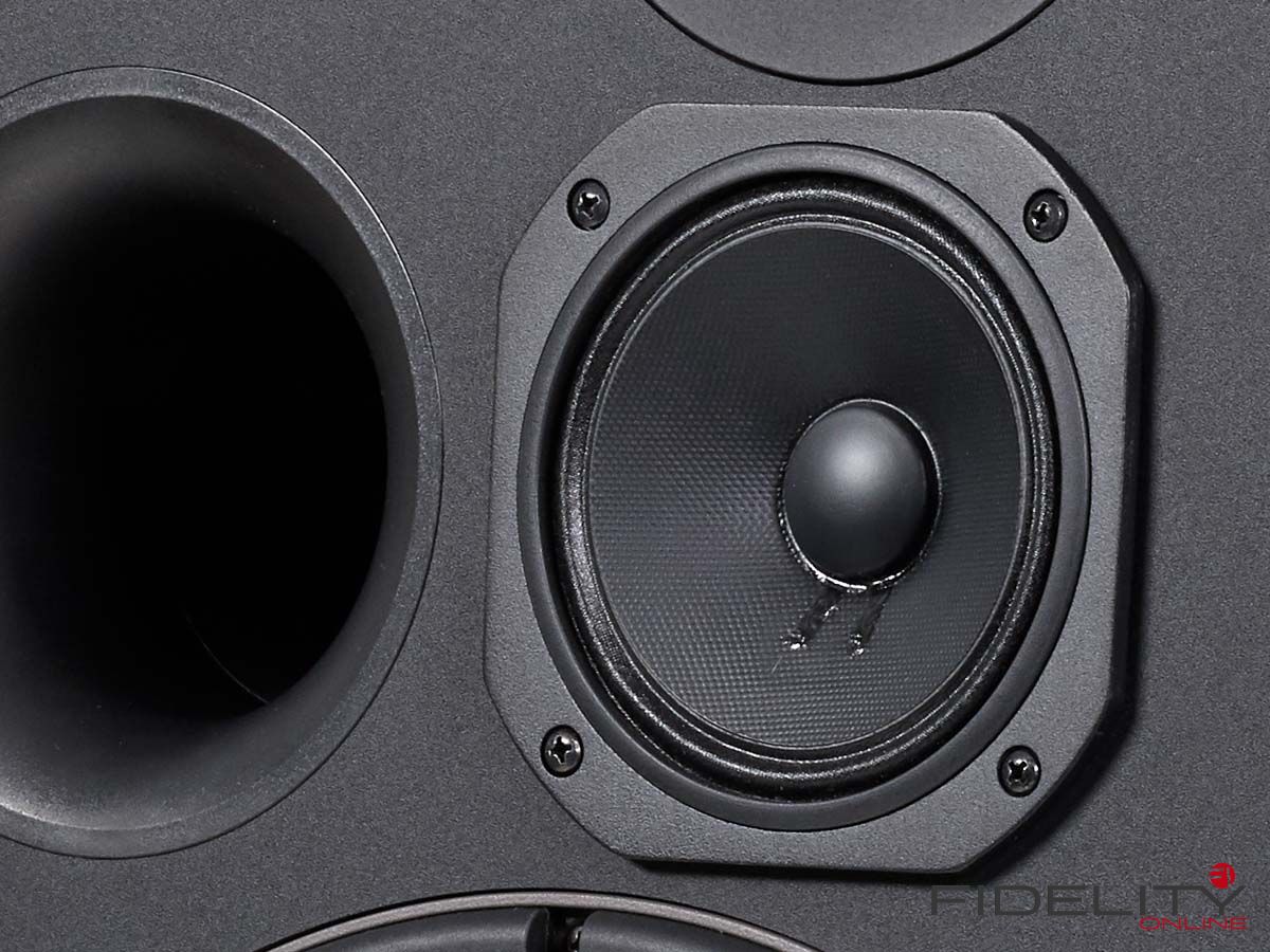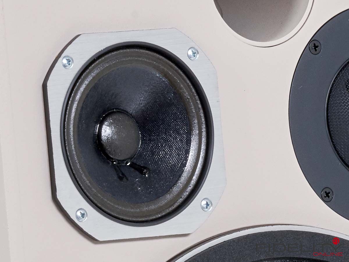 Bestückung: 2,5-cm-Titanhochtöner, 12,5-cm-Zellstoff-Mitteltöner mit Polymerbeschichtung, 30-cm-Zellstoff-Tieftöner