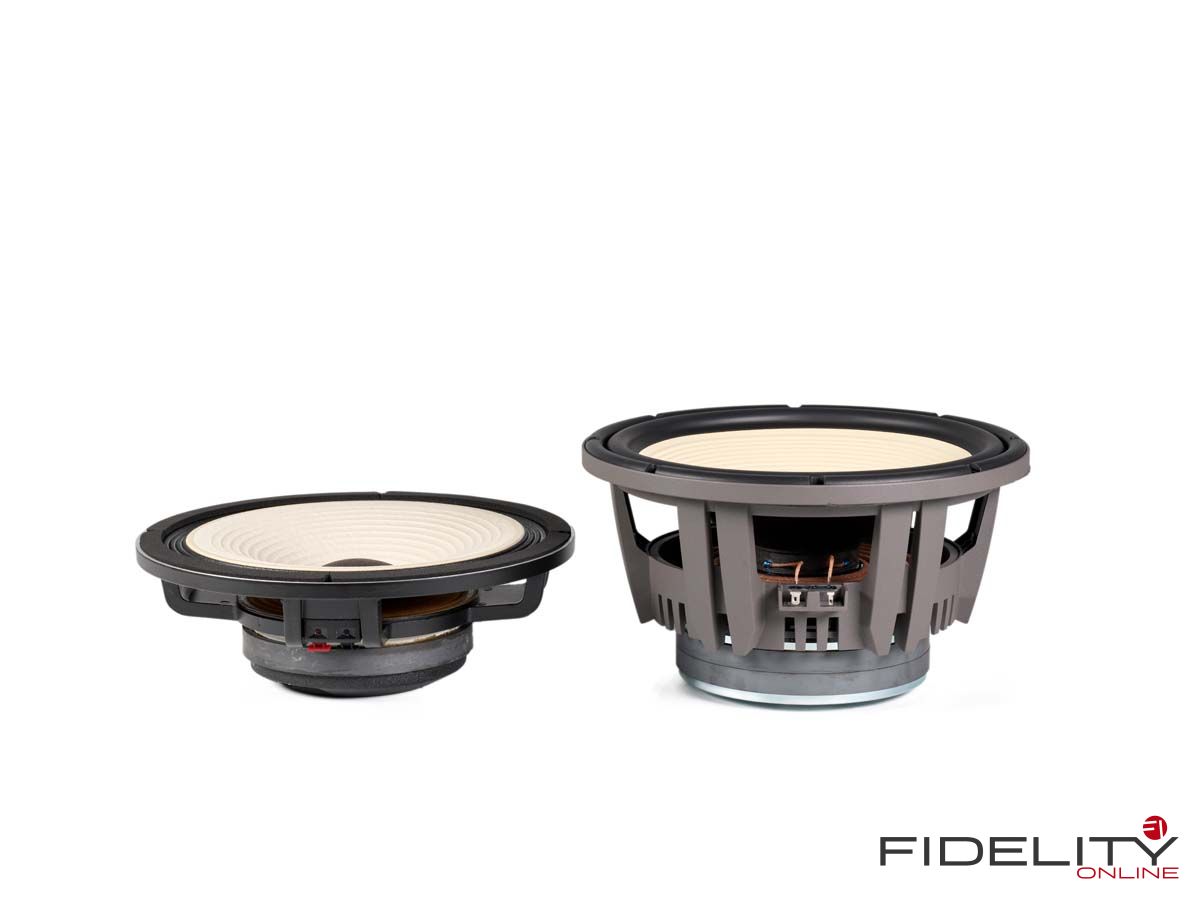 Diese Bilder illustrieren 40 Jahre Chassis-Entwicklung: Links die Treiber der 4312, rechts die der neuen L100. Der neue Mitteltöner weiß seine Resonanz besser zu verbergen.