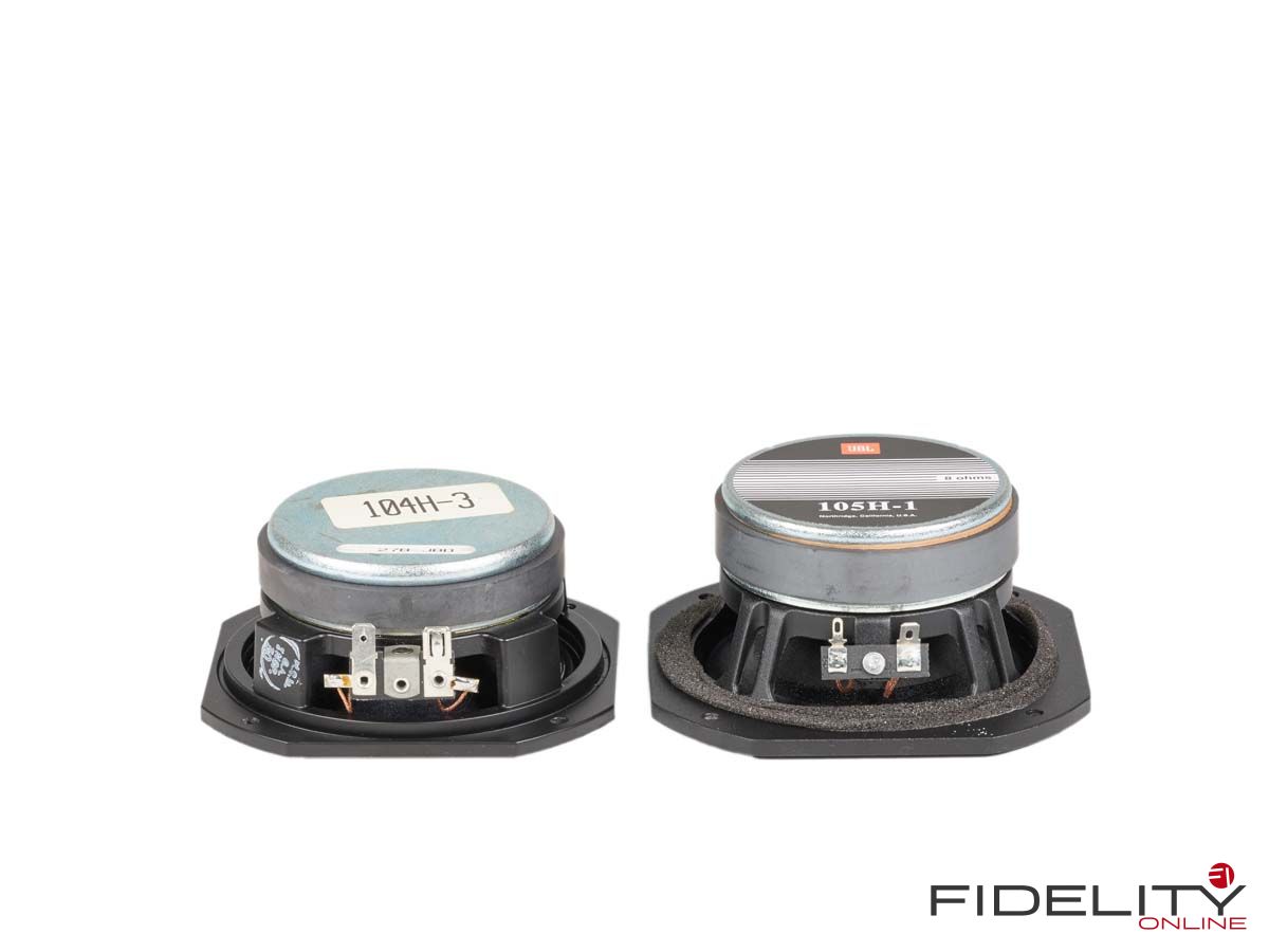 Diese Bilder illustrieren 40 Jahre Chassis-Entwicklung: Links die Treiber der 4312, rechts die der neuen L100. Vor allem der Antrieb des markanten Whitecone-Basstreibers hat unübersehbar zugelegt.