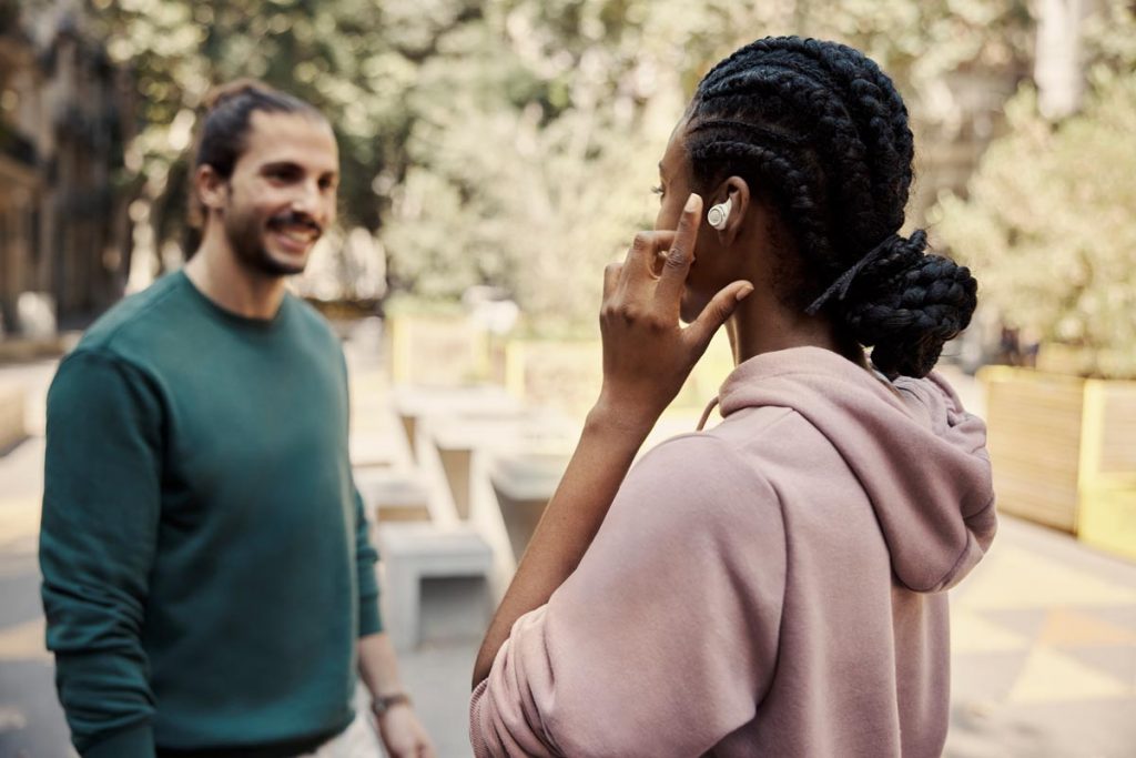 - 6-Mikrofon-Technologie, zwei Beamforming-Mikrofone sowie ein drittes zur Windunterdrückung an jedem Ohrhörer