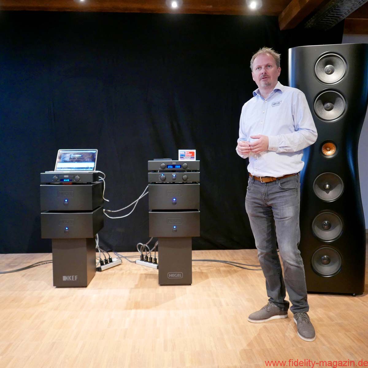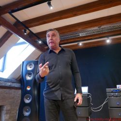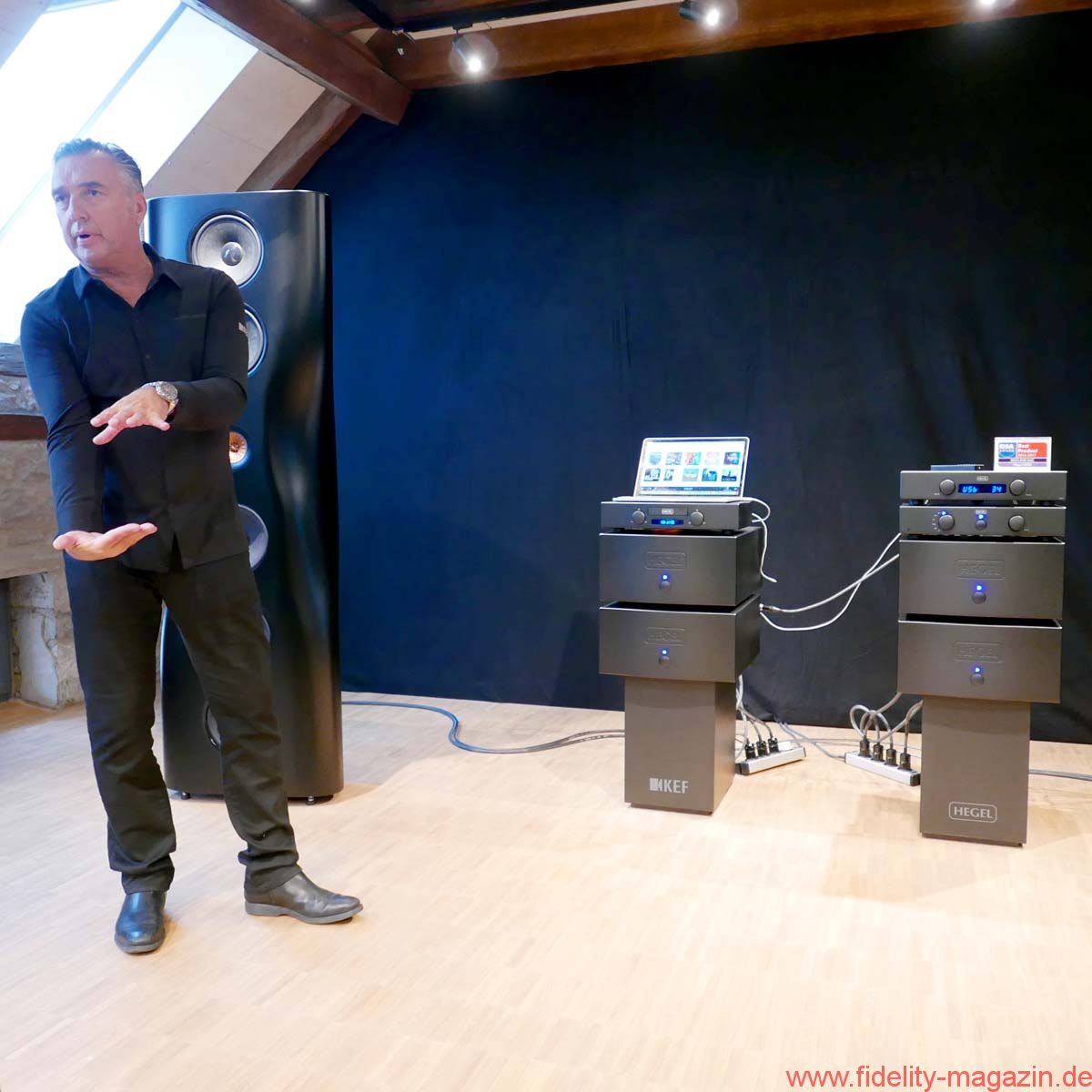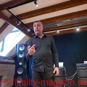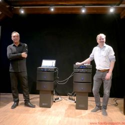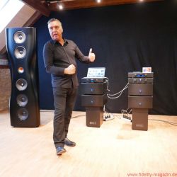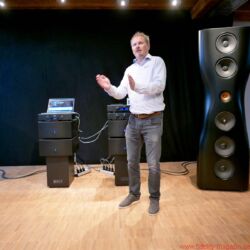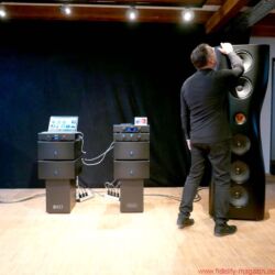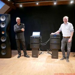 FIDELITY war zur Premiere der KEF Black Muon nach Gut Wöllried bei Würzburg gereist – wo diese Konstellation dauerhaft installiert ist und nach Absprache mit dem AudioLaden vorgeführt wird – und erlebte ein Konzert der Superlative. Selbstverständlich handelt es sich bei der Muon um die aktuelle, technisch deutlich verbesserte Version (mit dem Uni-Q-Koaxialtreiber aus der Blade und einer völlig neuen, ebenfalls verbesserten Frequenzweiche, hausintern als „Muon 2“ bezeichnet). Zudem steht mit einer kompletten großen Elektronikkette des norwegischen Spezialisten Hegel ein fantastischer Antrieb der Schallwandler zur Verfügung. Zum Exklusiv-Ereignis war übrigens auch Anders Ertzeid von Hegel angereist, der mit den Modellen HD30 und P30 gleich ein ganzes Quartett der großen Monoblöcke H30 vorstellte.