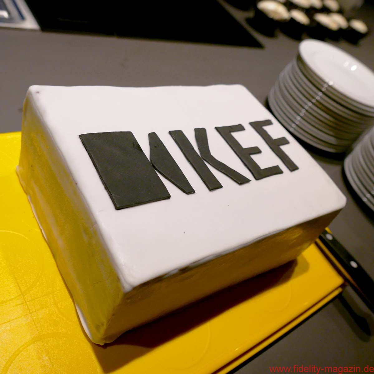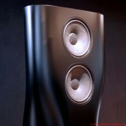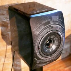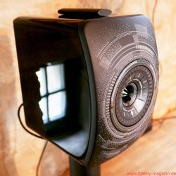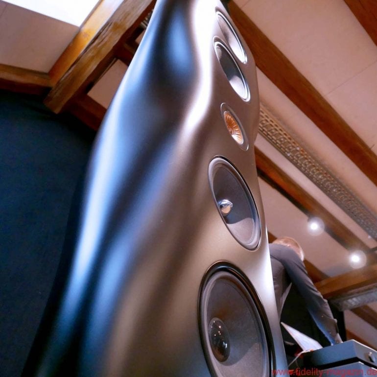 Das absolute Spitzenmodell der englischen Lautsprecherspezialisten stand neben ihm, ebenfalls in mattes Schwarz gehüllt. Für Kenner ein faszinierender Anblick, denn die rund zwei Meter große KEF Muon ist eigentlich nur im hochglanzpolierten Aluminiumkleid zu bekommen. Okay, ein frühes Einzelpaar in Schwarz wurde kurz nach der Premiere in England lackiert, verschwand aber sofort „nur zur Ansicht“ in einem Design-Museum, man sei auch „mit der Oberflächenqualität der Lackierung nicht hundertprozentig glücklich“.