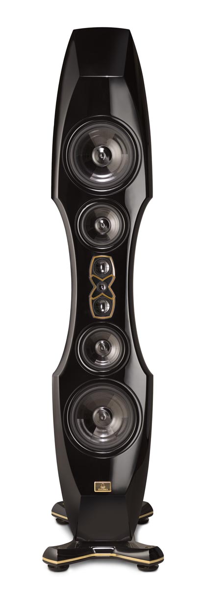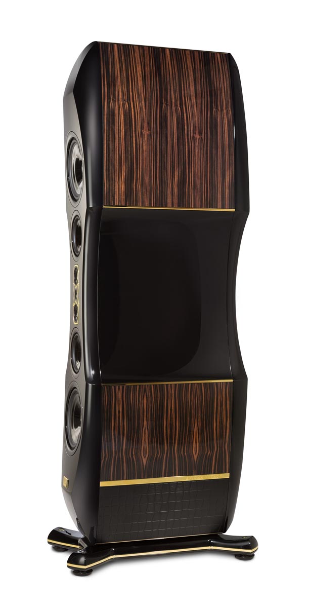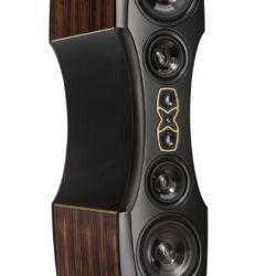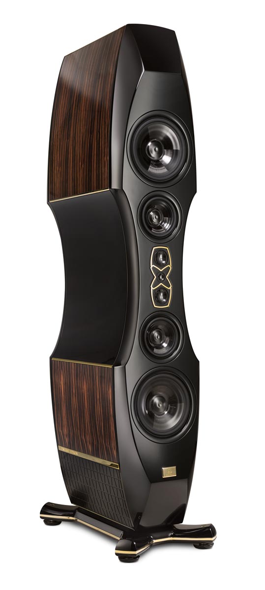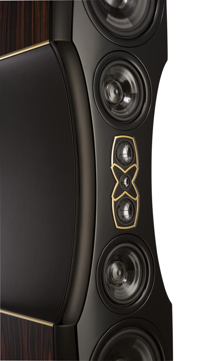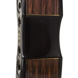 Beim Design des Gehäuses aus resonanzfreiem Panzerholz achtete Charles van Oosterum nicht nur darauf, durch geschwungene Formen stehende Wellen zu vermeiden, er schuf mit symmetrischer Chassis-Anordnung zudem einen Vierwege-Schallwandler, der dem Ideal einer Punktschallquelle sehr nahe kommt. So viel präzise Räumlichkeit, so korrekte Tiefen- und Breitenstaffelung traut man eher Kompaktlautsprechern zu. Die Enigma Veyron 2D ist die mit knapp zwei Metern Gardemaß nicht ganz kleine Schwester des Firmen-Flaggschiffs Enigma Veyron 1D und kann mit 500 Watt Sinus-Belastbarkeit pro Kanal und einem Maximalschalldruck von 120 Dezibel Musik-Orkane entfachen. Dennoch bleibt dieses Meisterstück der Boxenbaukunst stets kultiviert und spielt seine Vorzüge – homogener Klang, reiches Farbspektrum und klar umrissene Räumlichkeit – auch bei Zimmerlautstärke aus.