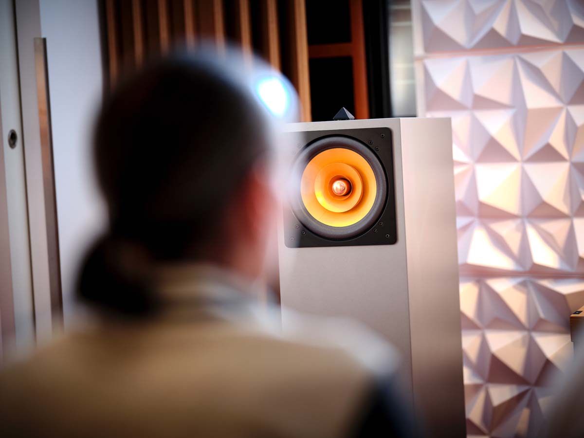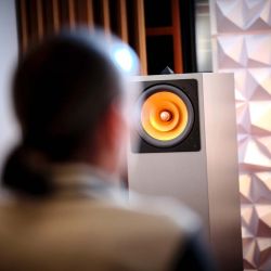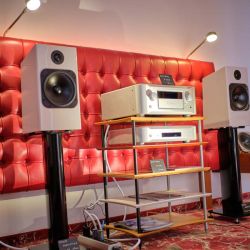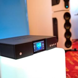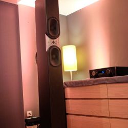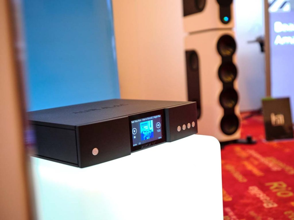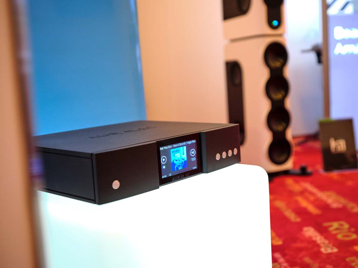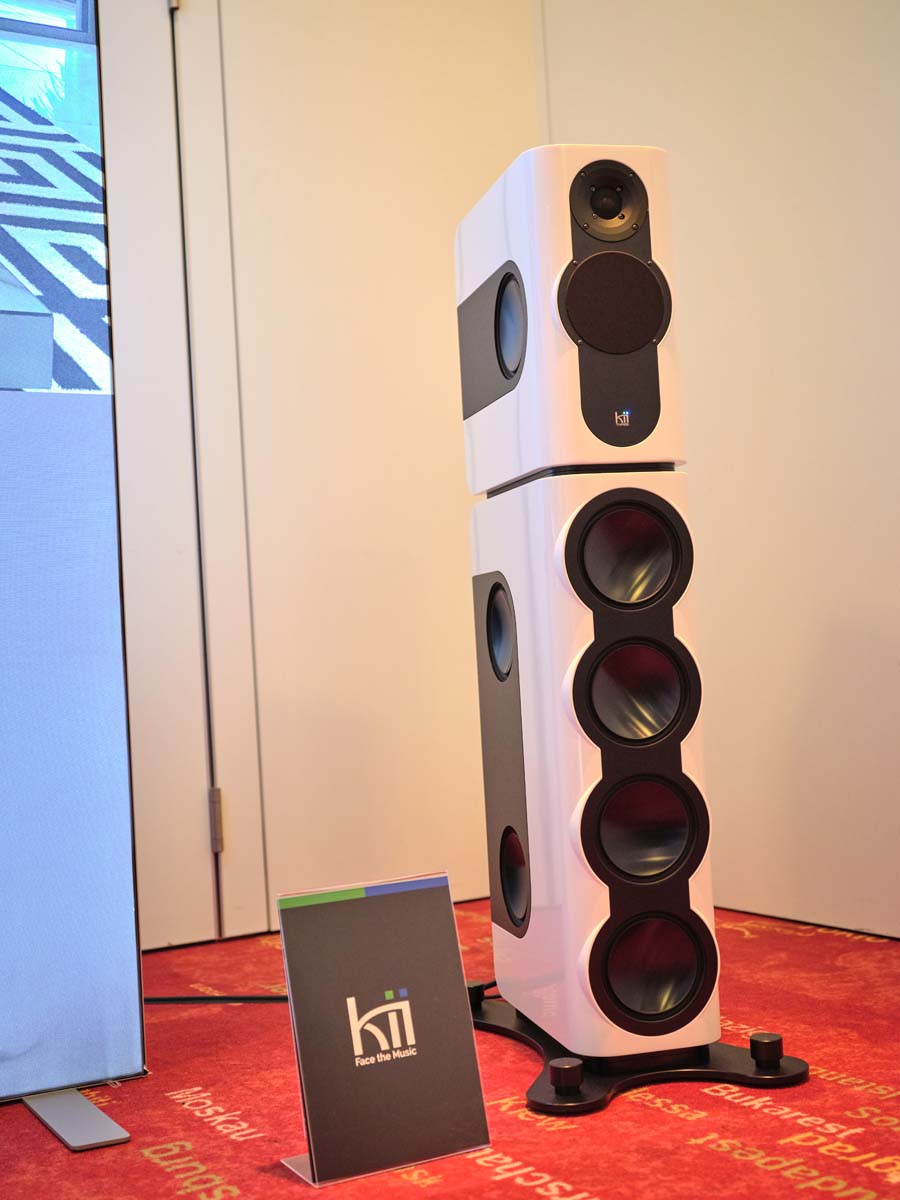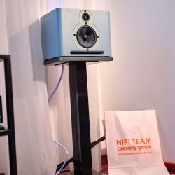 Einen völlig anderen Ansatz gab es nur wenige Räume weiter bei Kii Audio mit der Kii Three nebst Basserweiterung BXT. Quelle war ein Netzplayer von Auralic. Völlig anders deshalb, weil anders als bei Daudio, die den Raum durch das Dipol-Konzept mit einbeziehen, Kii mit seinem Konzept Raumeffekte weitestgehend ausschließt. Musik über die Kiis klingt präzise auf den Punkt. Da wird nichts geschönt. Man kann sicher sein, das nichts verloren geht. Ein absolutes Präzisionsinstrument eben.