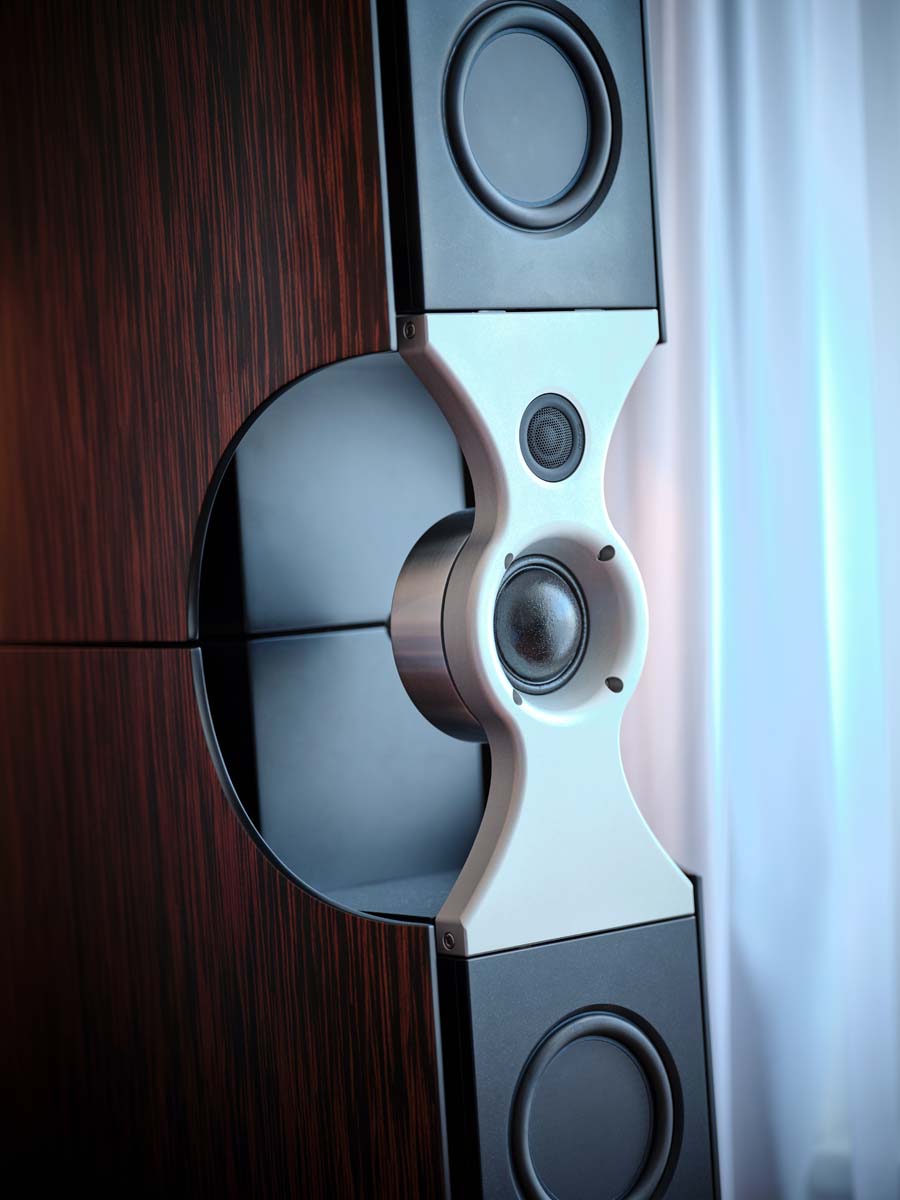 Bluehorn ist ein großer 2-Wege Hornlautsprecher (4 Zoll Kompressionstreiber und 12 Zoll Basslautsprecher), der auf einem noch größeren Subwoofer (18 Zoll Basslautsprecher) ruht. Die notwendigen Verstärker sind bereits in die Lautsprecher integriert. Jedoch braucht es zur Ansteuerung noch den hauseigenen Prozessor namens Bluehorn 816 Processor. Damit ist das System komplett und soll laut Aussage des Herstellers einen absolut ausgeglichenen Frequenzgang, vor allem aber eine völlig lineare akustische Phase haben, was so viel bedeutet, dass alle Frequenzen zur exakt gleichen Zeit beim Hörer ankommen. Darüber hinaus verfügt das System über sehr ausgeglichene Isobaren, was wiederum so viel bedeutet, dass der Raum über den Frequenzbereich sehr gleichmäßig angeregt wird.