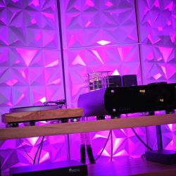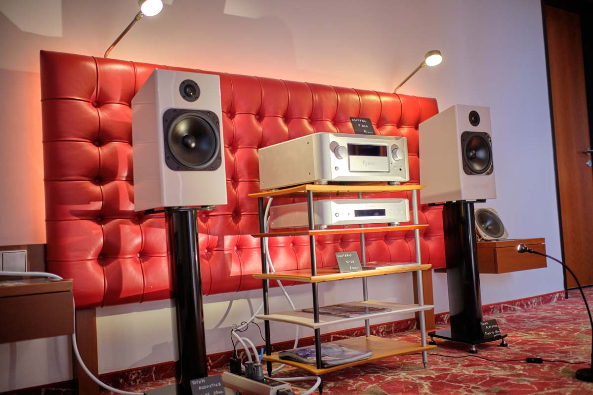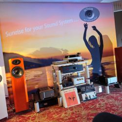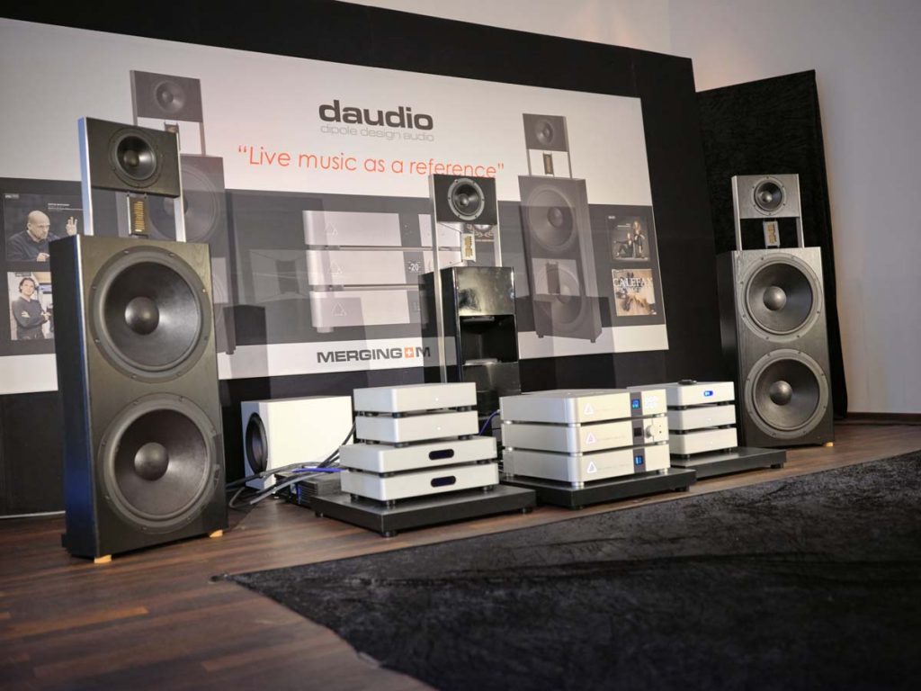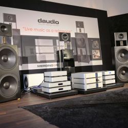 Eine beeindruckende Präsentation gab es in einem Raum im Erdgeschoss, der so weit abseits lag, das sicher nicht jeder Besucher dorthin fand. Daudio Lautsprecher an einer Elektronik von Merging Technologies. Daudio hatte dort mit seinen offenen Dipol-Lautsprechern eine Mehrkanalinstallation aufgebaut die nicht nur Musik auf eine organische Art und Weise transportierte, sondern vor allem die Atmosphäre der Aufnahmesituation wiederzugeben vermochte, das man aus dem Staunen nicht raus kam.