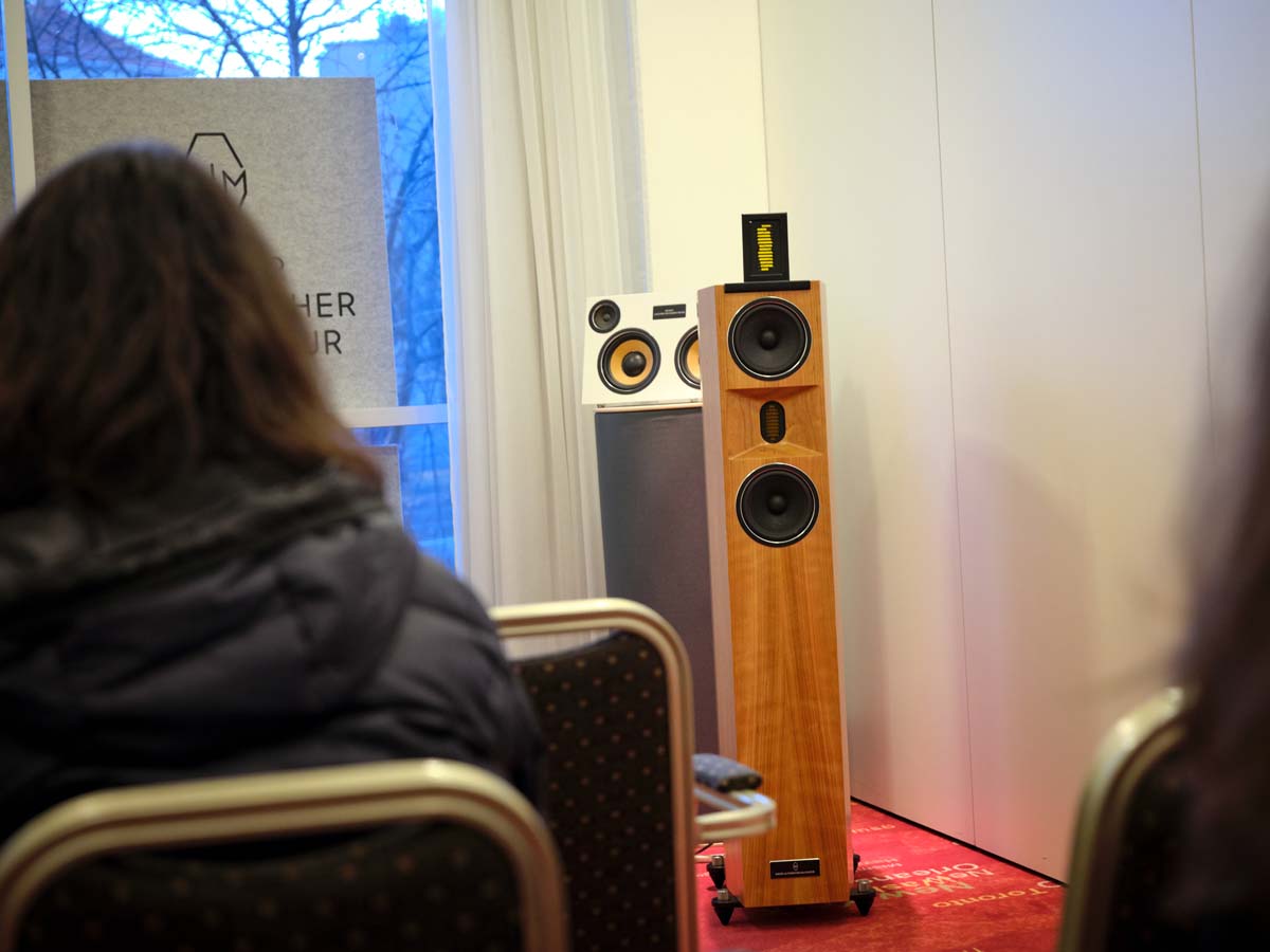 Weiterhin erwähnenswert war die Präsentation der Wiener Lautsprecher Manufaktur WLM. Ihr Konzept des oben aufgesetzten Air Motion Transformers (AMT) geht voll und ganz auf, beschert es doch ein weitläufiges, schön aufgelöstes und dennoch nicht anstrengendes Hochtonerlebnis.