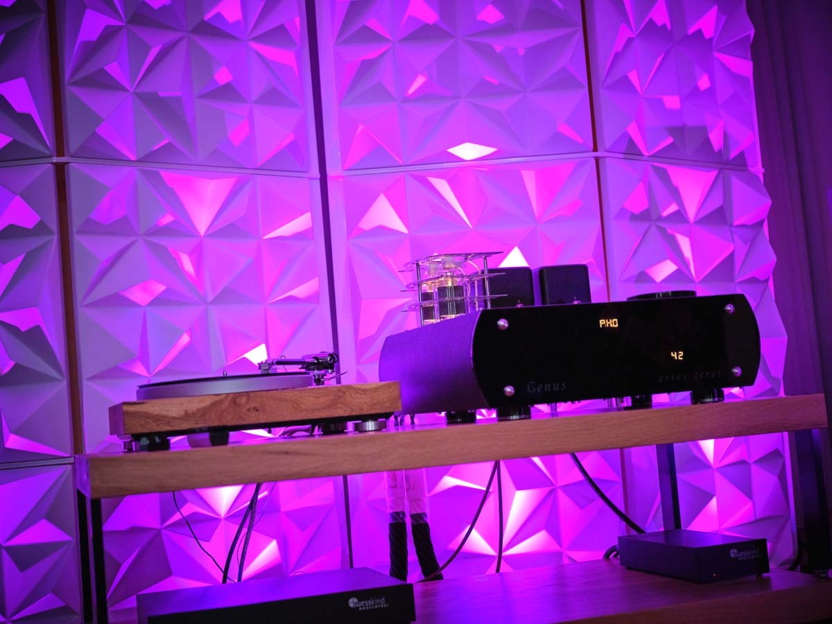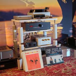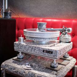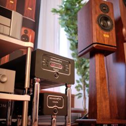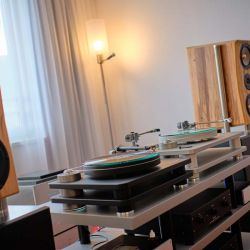 Eine für uns sehr interessante Neuentdeckung war Paltauf aus Österreich. Die Vorführung, bestehend aus eigener Elektronik (Röhre) und Lautsprecher (AMT) gehörte zweifelsohne zu denen, die man nicht verpasst haben sollte. Gleiches gilt übrigens auch für Vienna Audio Engineering mit einem Frontend in Form des großen Seismograph Laufwerks.