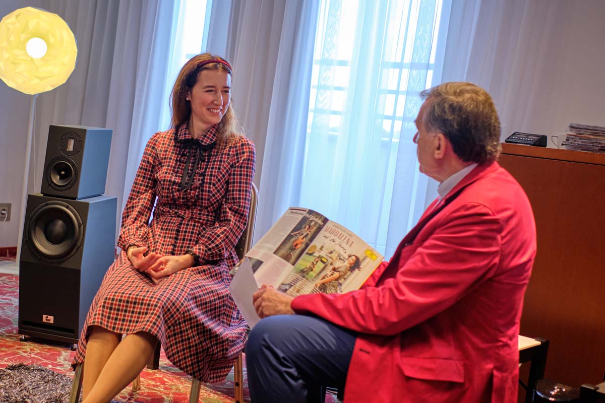 Neben dem Erdgeschoss ist das komplette 5. Stockwerk der Messe gewidmet. Hier treffen wir direkt auf Joachim Gerhard von Süsskind Audio, der mit seiner neuen BEO EX nach Wien anreiste. Die EX ist eine Weiterentwicklung der bekannten BEO und wartet mit einem echten Bändchen Hochtöner auf. Der Klang? Verblüffend nah am Original. Davon konnten wir uns bei einer der vielen Vorführungen des Rahmenprogramms im Raum von Süsskind überzeugen. Dort war Maddalena Del Gobbo mit ihrem Album „Maddalena and the Prince“ zu Gast und spielte Teile daraus auf einem seltenen Baryton.