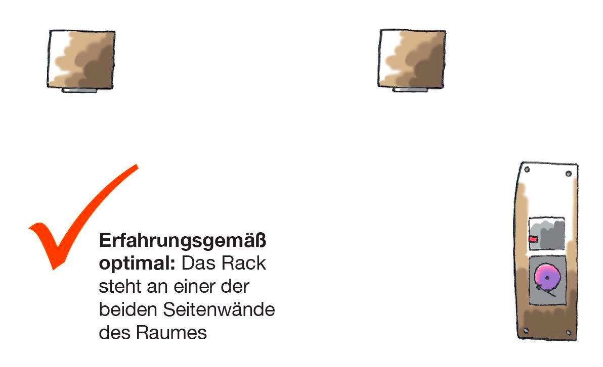 Folgende Plätze sind am wenigsten für die Positionierung der Geräte geeignet: 1) zwischen den Lautsprechern, 2) im Eck hinter einem Lautsprecher, 3) an der gegenüberliegenden Wand hinter dem Hörplatz. Falls es unmöglich sein sollte, den „Altar“-Aufbau zu vermeiden, bringt es schon viel, das Rack unmittelbar an der Wand zu positionieren und die Lautsprecher deutlich weiter vorne aufzustellen. Der beste Platz fürs Rack? Liegt folglich an den Seitenwänden, wenn wir die Lautsprecherseite als „vorne“ definieren. Und die nun unvermeidlich auftauchende Frage nach den dann deutlich längeren Lautsprecherkabeln beantworte ich jetzt mal sehr offen: egal. Erfahrungsgemäß überwiegt die richtige Anordnung der ganzen Anlage jeden klanglichen Effekt durch Kabel bei weitem! Eine alte und nichtsdestotrotz richtige Faustregel besagt, dass die Kabel mit dem höchsten Signalniveau (die Lautsprecherkabel) am längsten sein dürfen, während man Hochpegel-Verbindungen viel eher kurz halten sollte. Ich selbst verwende acht Meter lange Lautsprecherstrippen und stelle etwa auch Monoblöcke ins Rack anstatt neben die Lautsprecher.