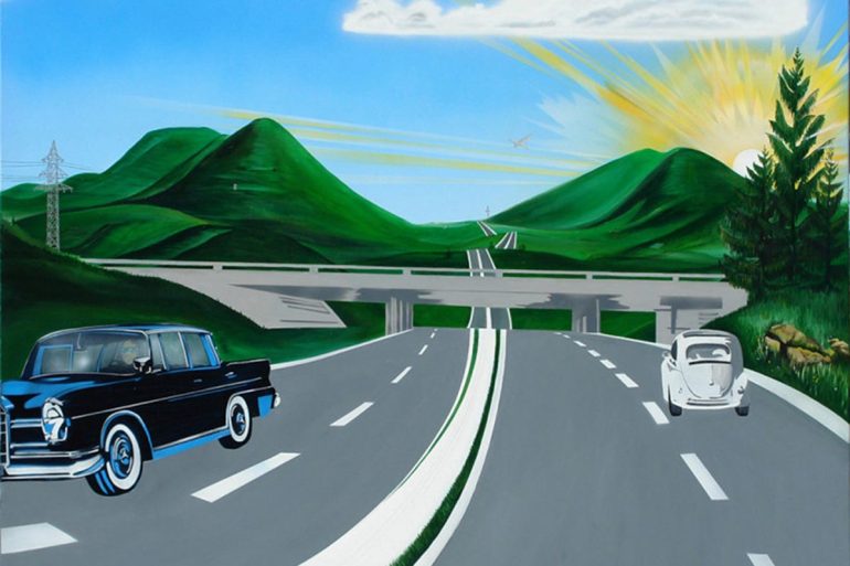 Für Ralf Hütter waren Autofahren und Musik engstens miteinander verknüpft. „Mein erster Mini-Moog hat genauso viel gekostet wie mein grauer VW Käfer: 5500 D-Mark. Mit dem Auto konnte ich in der Gegend herumfahren – und mit dem Synthesizer konnte ich mir die ganze Welt erschließen.“ Er habe auf der Autobahn damals „das Summen der Motoren, das Tuning und die singenden Luftströme“ wie elektronische Klänge wahrgenommen. „Wir fuhren viel herum und lauschten auf die wechselnden Sounds. Die Idee war, diese Sounds auf dem Synthesizer nachzubauen.“ Der Klang der Autohupe oder entgegenkommender Autos wurde elektronisch imitiert. Und die Monotonie der Autobahnfahrt wurde umgesetzt in musikalische Monotonie – das hatte schon fast Trance-Qualität. Viele Wiederholungen, wenige Akkordwechsel. Schlichte Vier-Ton-Motive und ein roboterhafter Sprechgesang (auf Deutsch!). Kraftwerk haben die Technik nie einfach nur verwendet – sie haben sie thematisiert. „Mensch und Maschine“, das wurde ihr Dauer-Motto. Das Stück selbst (22:30) ist gebaut wie ein Progrock-Longtrack – eine Aneinanderreihung von einander ähnlichen Strophen und von einmaligen Episoden dazwischen. Legendär der Anfang des Stücks: der startende VW Käfer. Klassisch der Refrain: „Wir fahr’n, fahr’n, fahr’n auf der Autobahn“. (In Amerika verstand man: „fun, fun, fun“.) Die erste Strophe spricht von der schönen Landschaft, die zweite vom grauen Straßenband, die dritte dann vom Autoradio – es folgt eine Collage aus Frequenzsuch-Geräuschen, Stimmen, Klavierimprovisation „aus dem Radio“. Von dort kommt dann scheinbar auch der Refrain – ein Song im Song. Für die Episoden dazwischen ändern sich Bassfigur und Rhythmus, aber das Tempo bleibt (schneller Disco-Beat). Die erste Episode (ca. 3:20 bis 6:40) enthält sogar eine kleine Interaktion zwischen Flöte, E-Gitarre, Synthesizer – nicht rockig, aber auch nicht durchkomponiert. Episode 2 (ca. 8:15 bis 13:15) konzentriert sich zunächst auf die elektronischen Drums und Sounds (rasende Autos) – mit „elektronischer Pauke“, Vocoder usw. Ein „Adagio“-Teil (ab 16:00) variiert schließlich den Refrain, und daraus entwickelt sich eine Art Coda mit verändertem Gesang und Thema und mit zusätzlichen Synthesizerparts. Diese Apparate waren damals noch analog – und einstimmig.